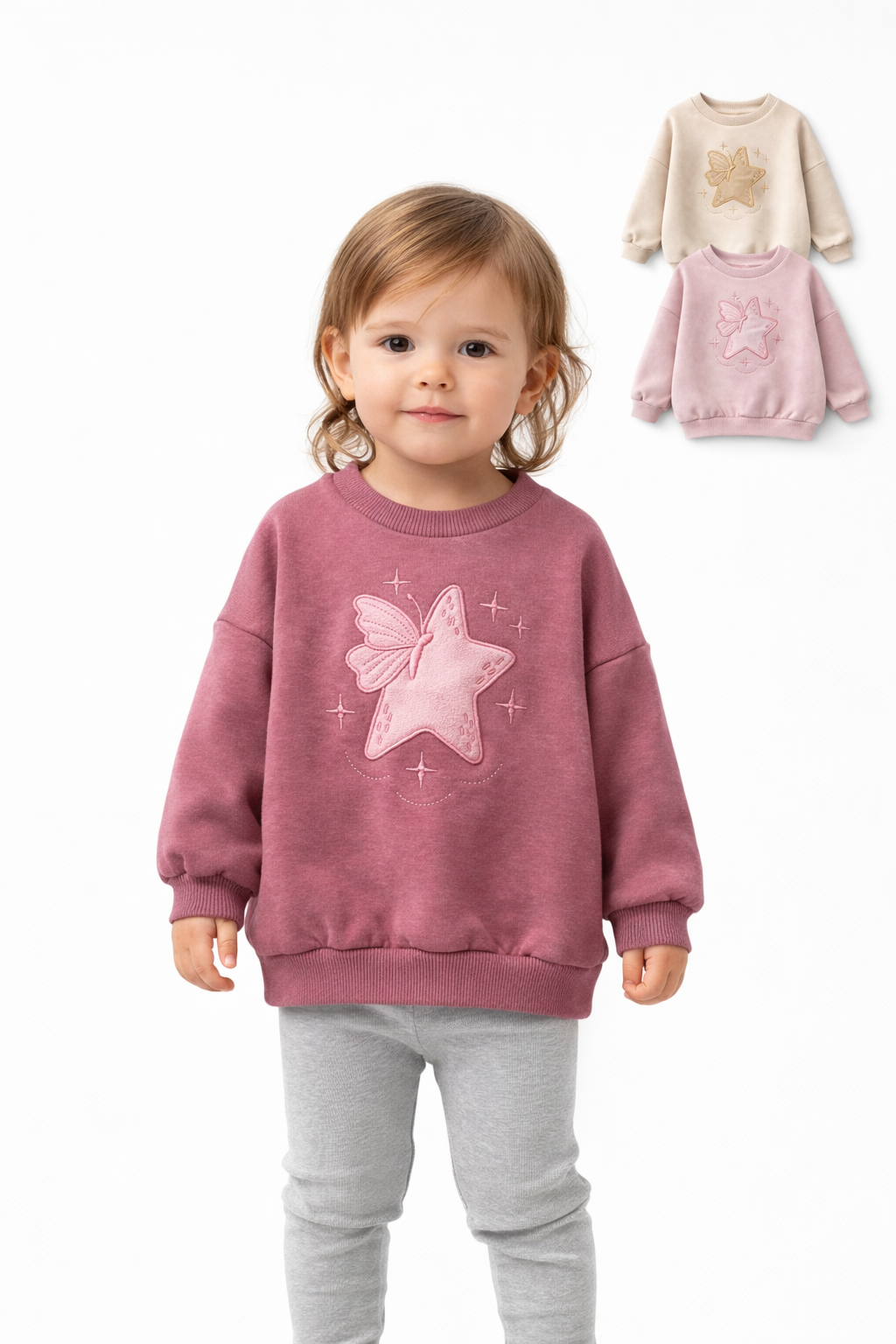 BUZO DE FRISA PARA BEBA, BORDADO ESTRELLA CON MARIPOSA. BABY WAY