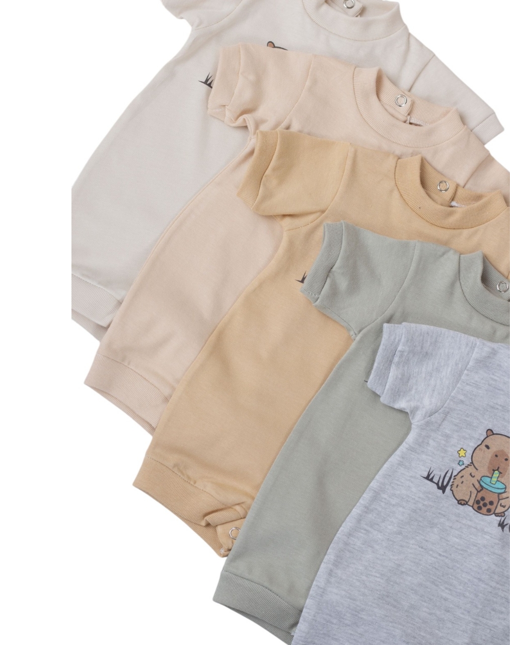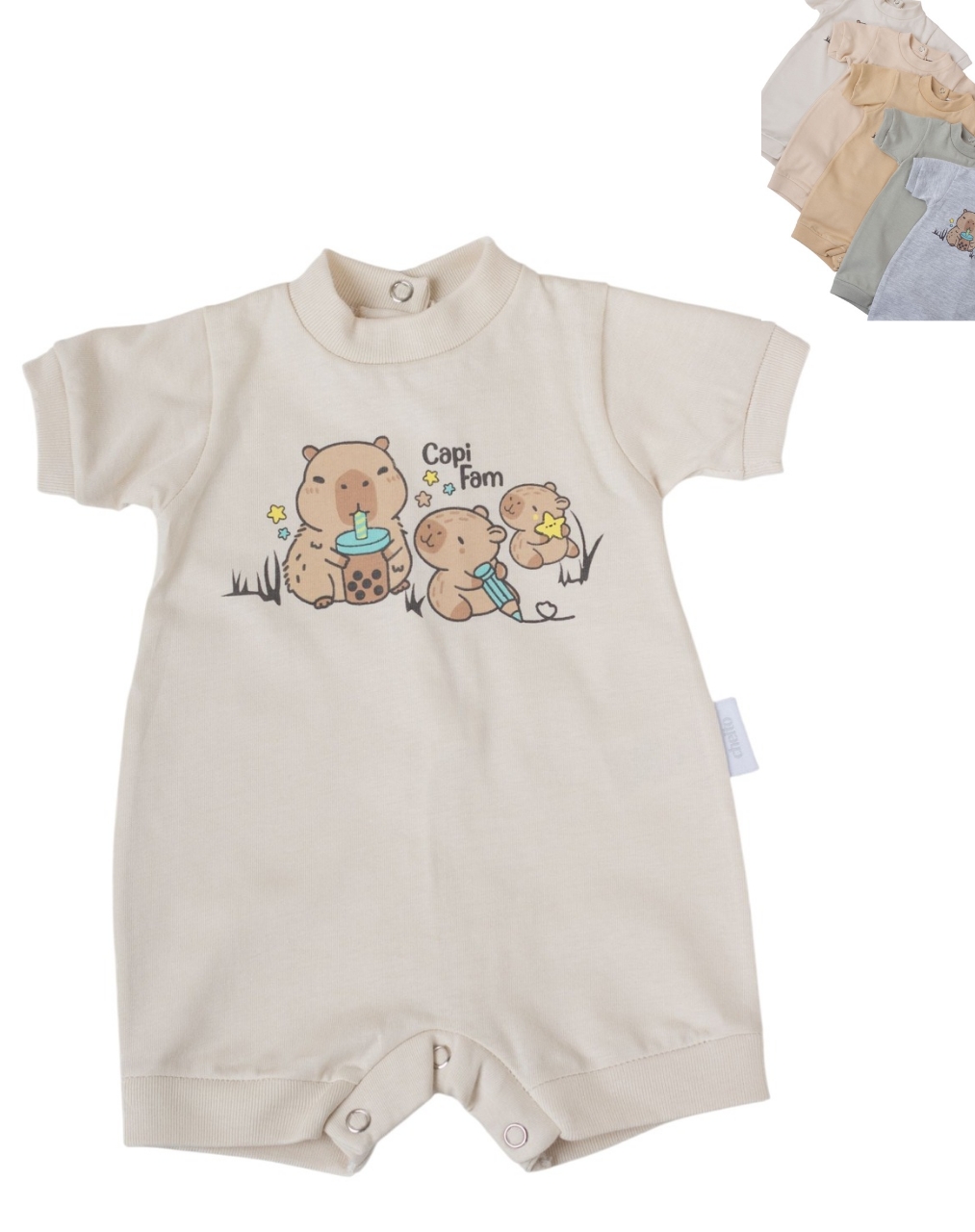 Enterito corto en algodon unisex estampa capibara.Baby cheito
