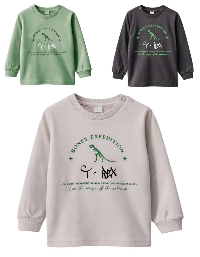 REMERA MANGA LARGA PARA BEBE ESTAMPA DINOSAURIO. GRUNY