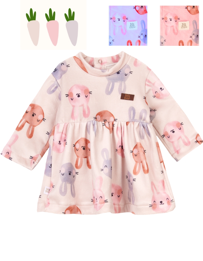 VESTIDO BEBA DE PLUSH ESTAMAPADO CONEJOS. BIG BAY