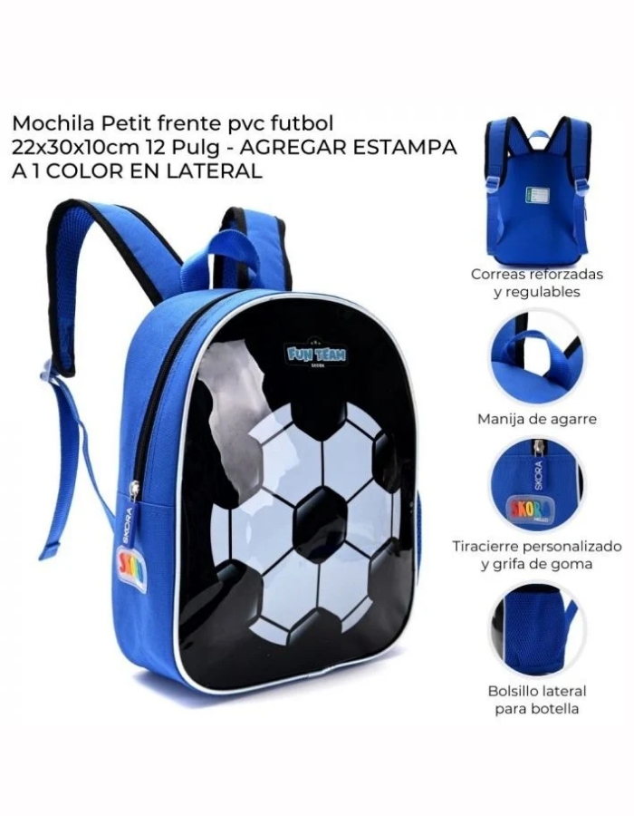 Mochila petit termoformada futbol.medidas 22x30x10cm 12pulg.