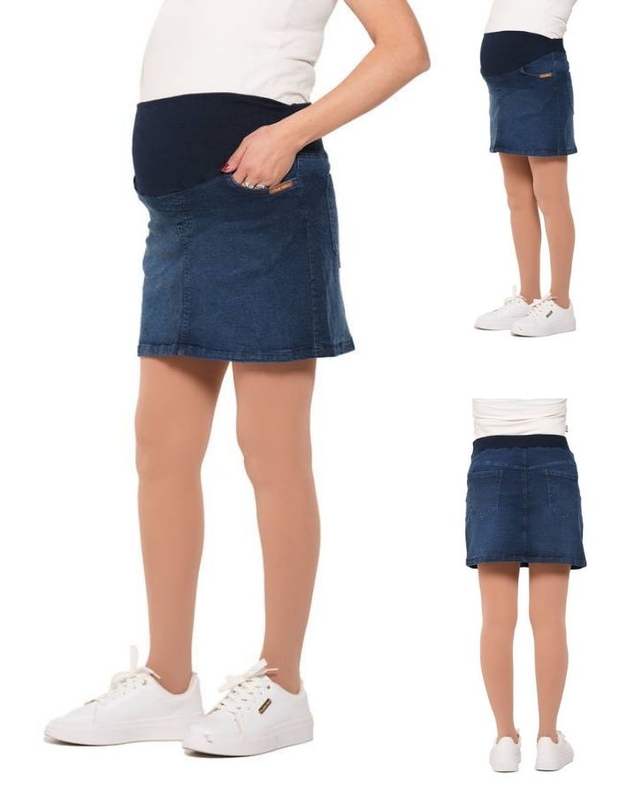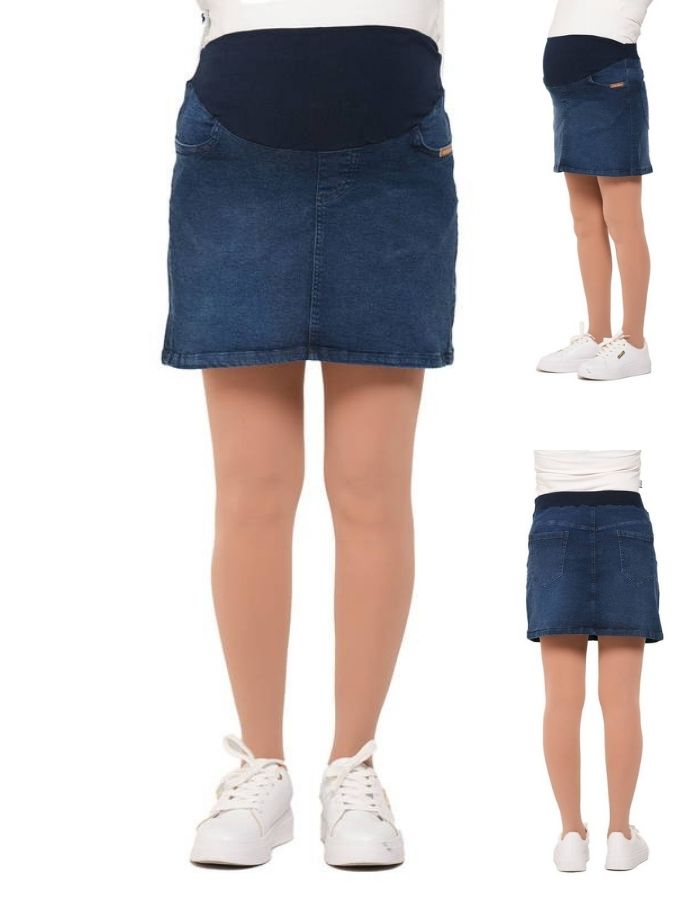 POLLERA DE JEAN CELESTE CON RUEDO DESCOCIDO FAJA CRUZADA QUE SERA
