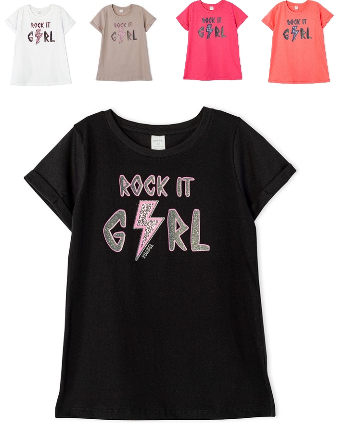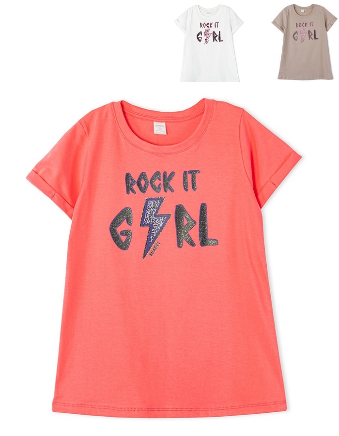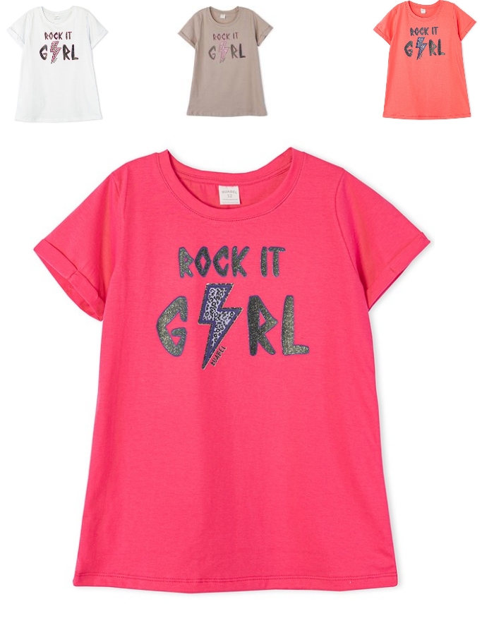 Remera maga corta para nena estampa ' Rock it gerl'. Ruabel