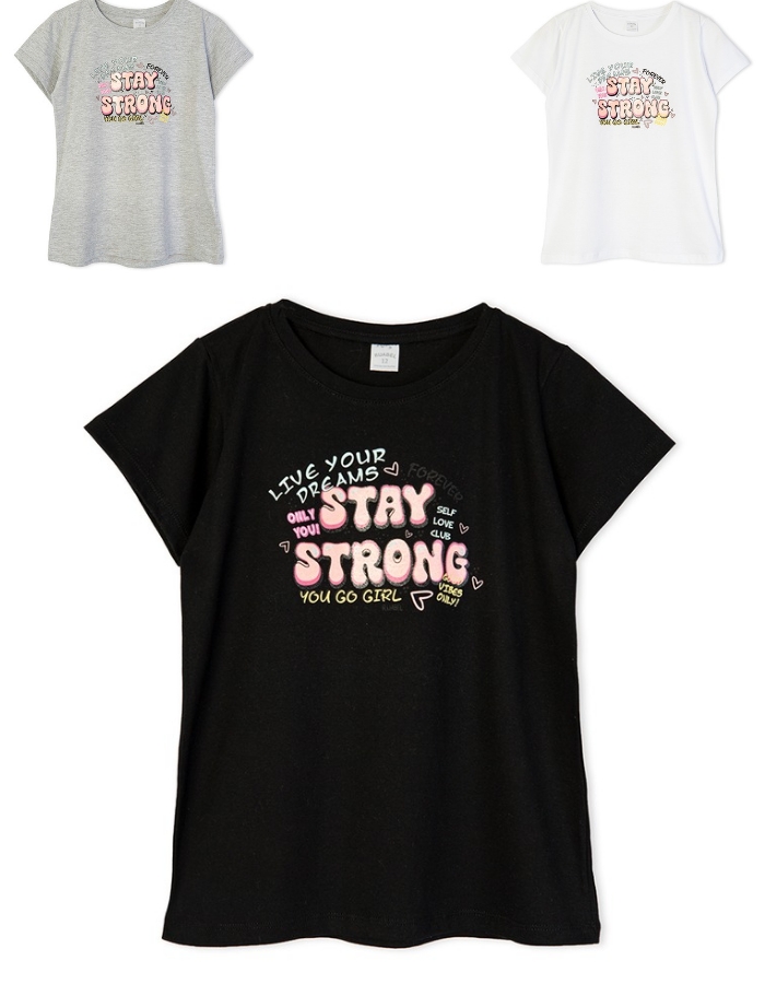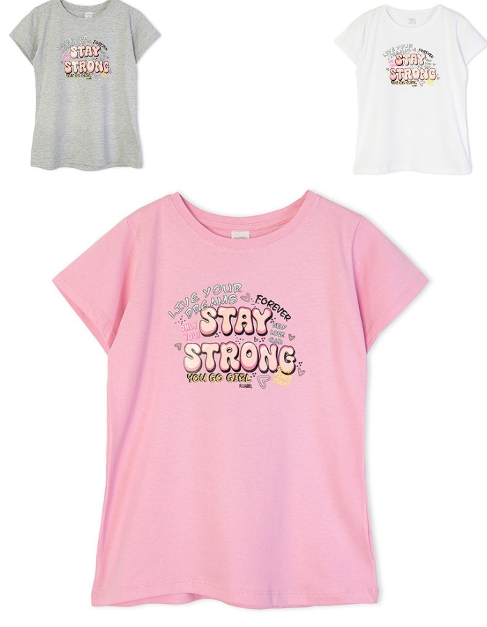 Remera manga corta para nena estampa 'Stay strong'. Ruabel