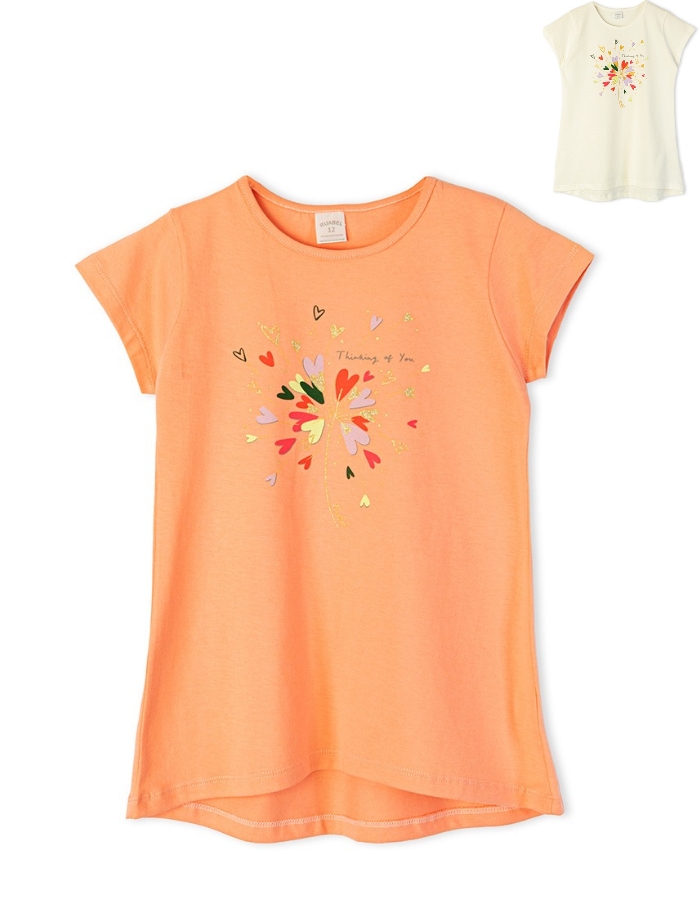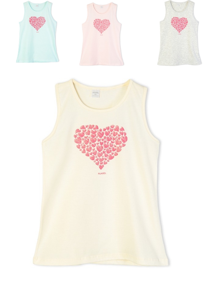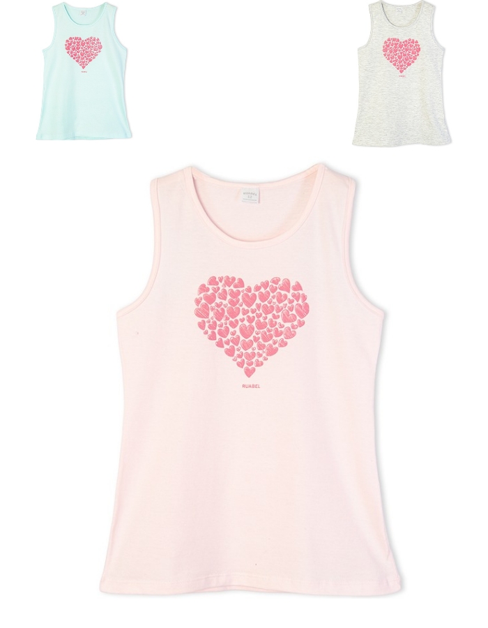 REMERA NENA MANGA CORTA ESTAMPA CORAZONES. RUABEL
