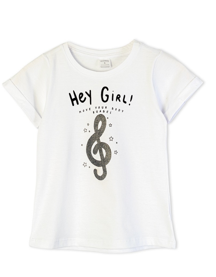 REMERA NENA MANGA ACORTA ESTAMPA 'HEY GIRL'. RUABEL