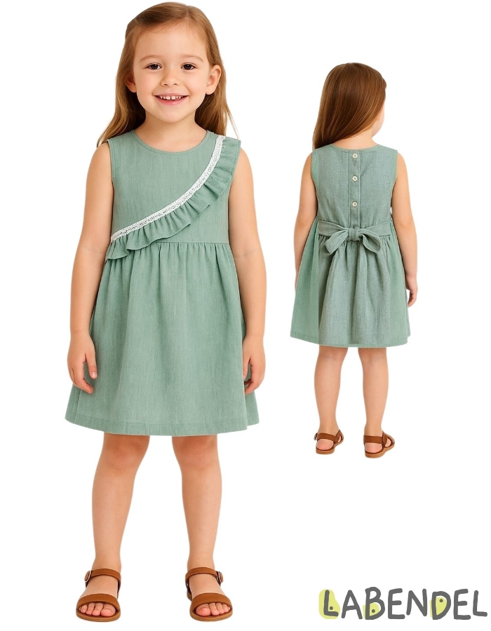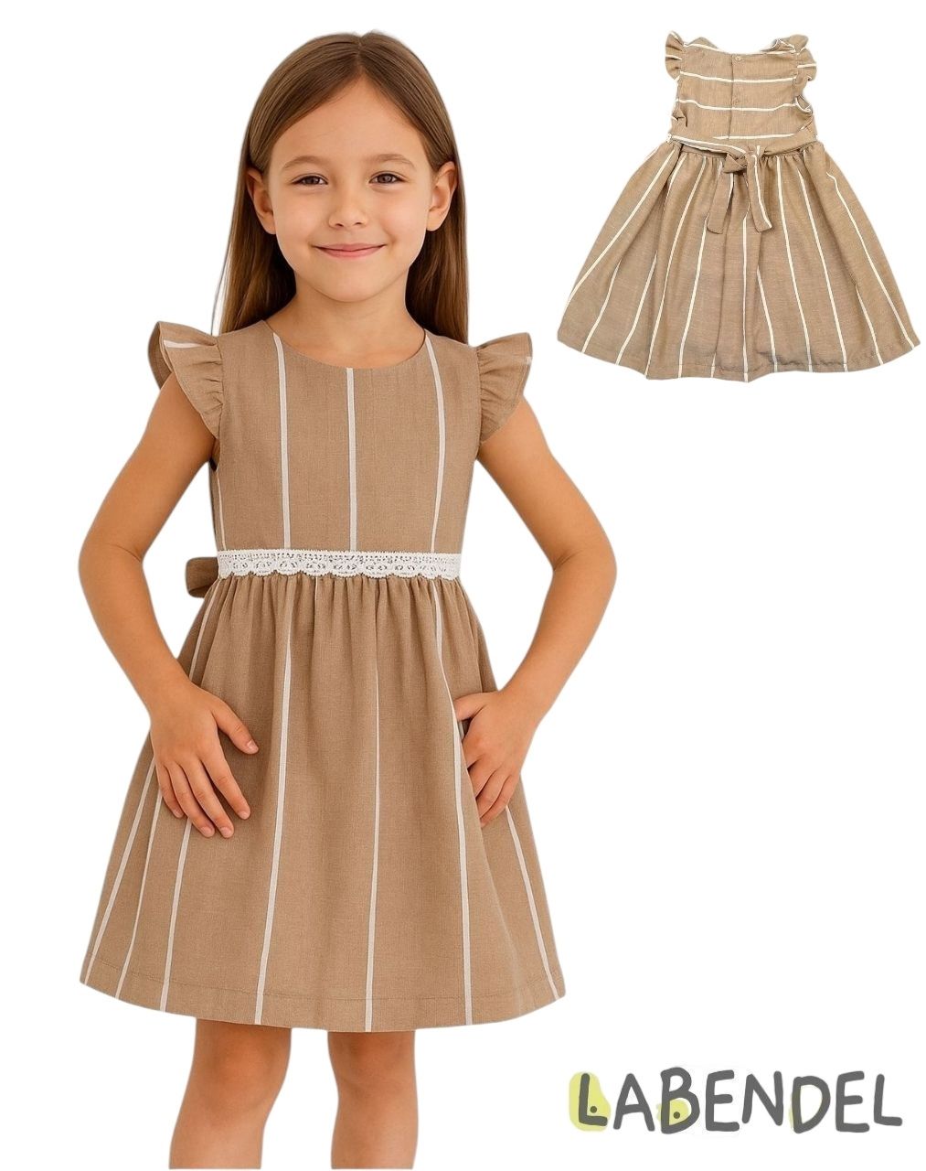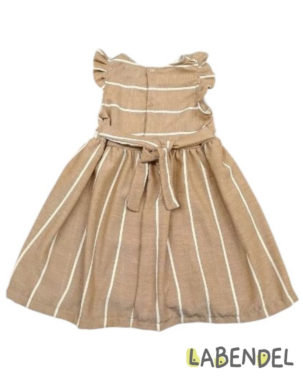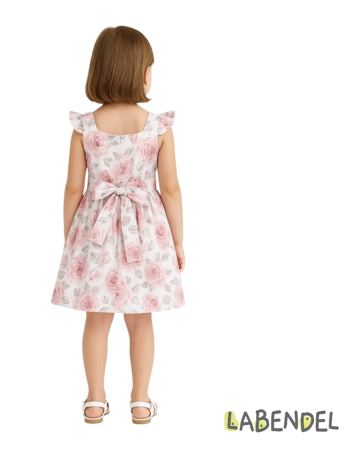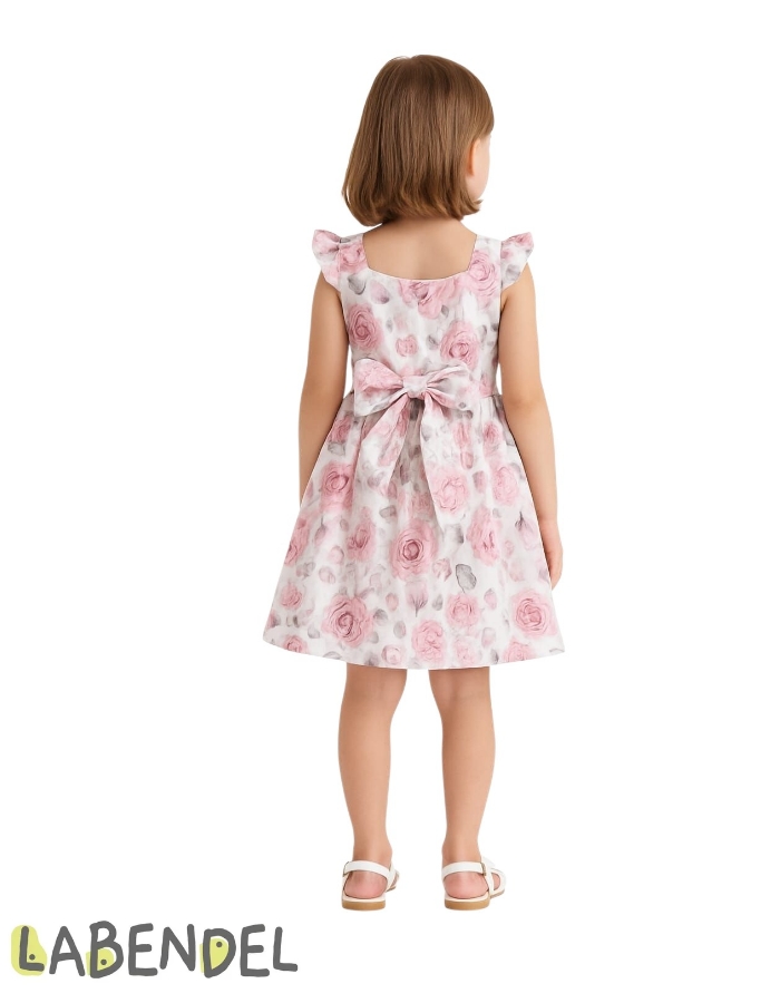 Vestido de poplin crudo con flores rosas para nena.Labendel