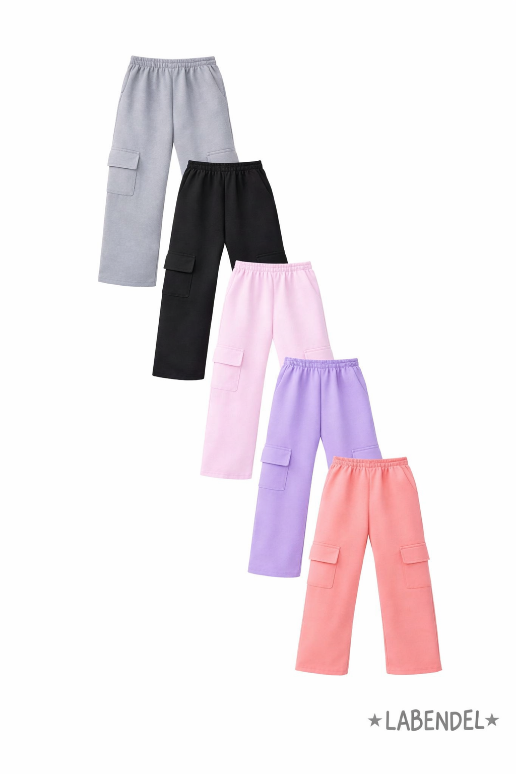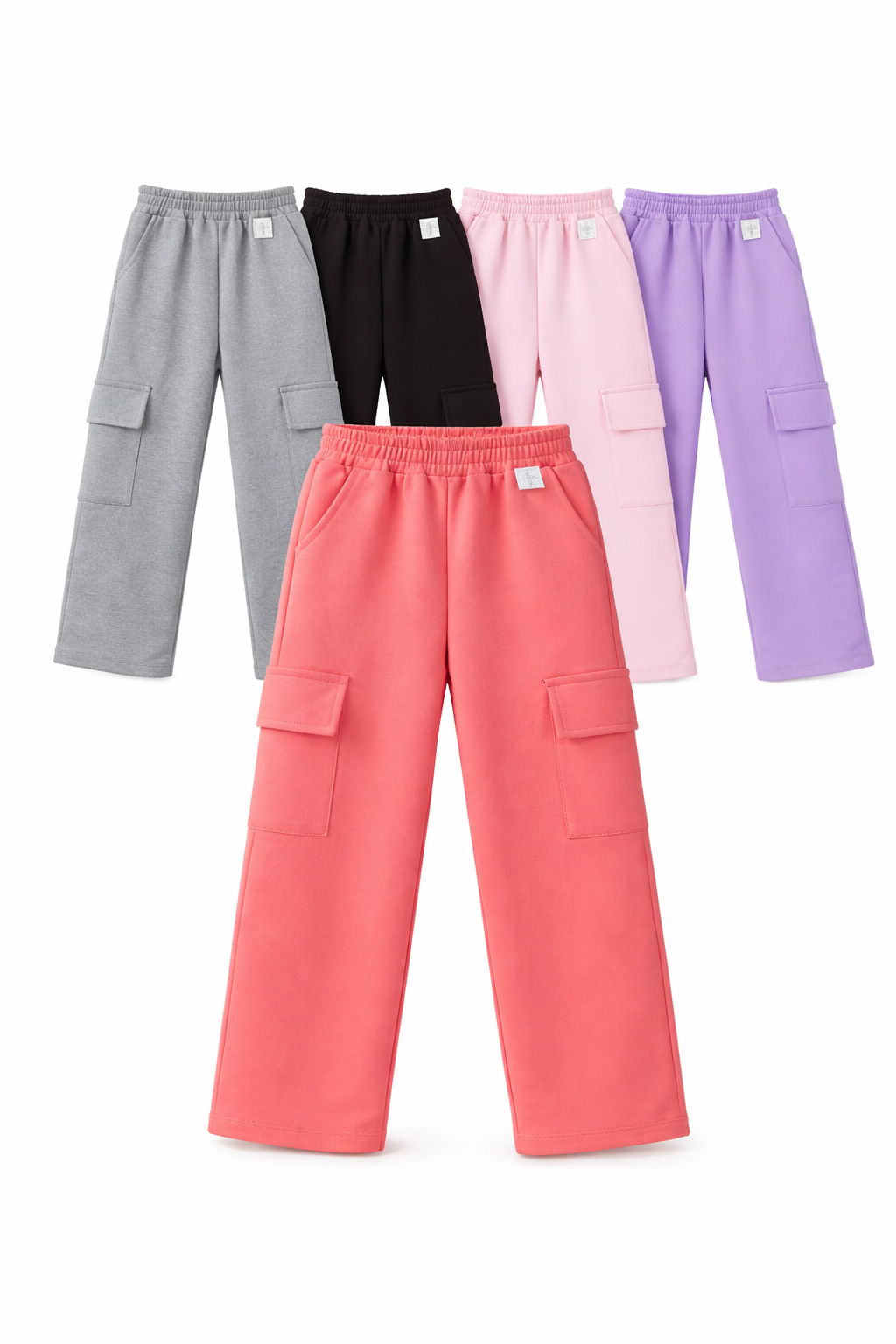 Pantalón jr nena color wide leg cargo c/cintura elastizada. Gepetto