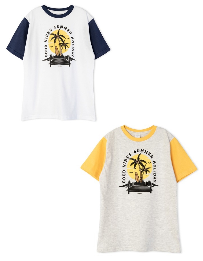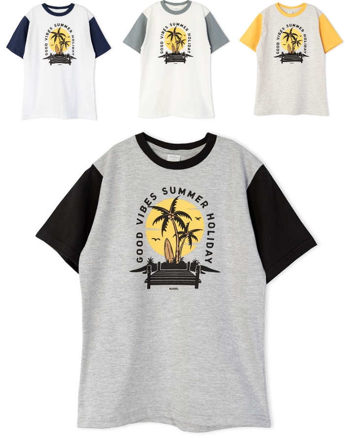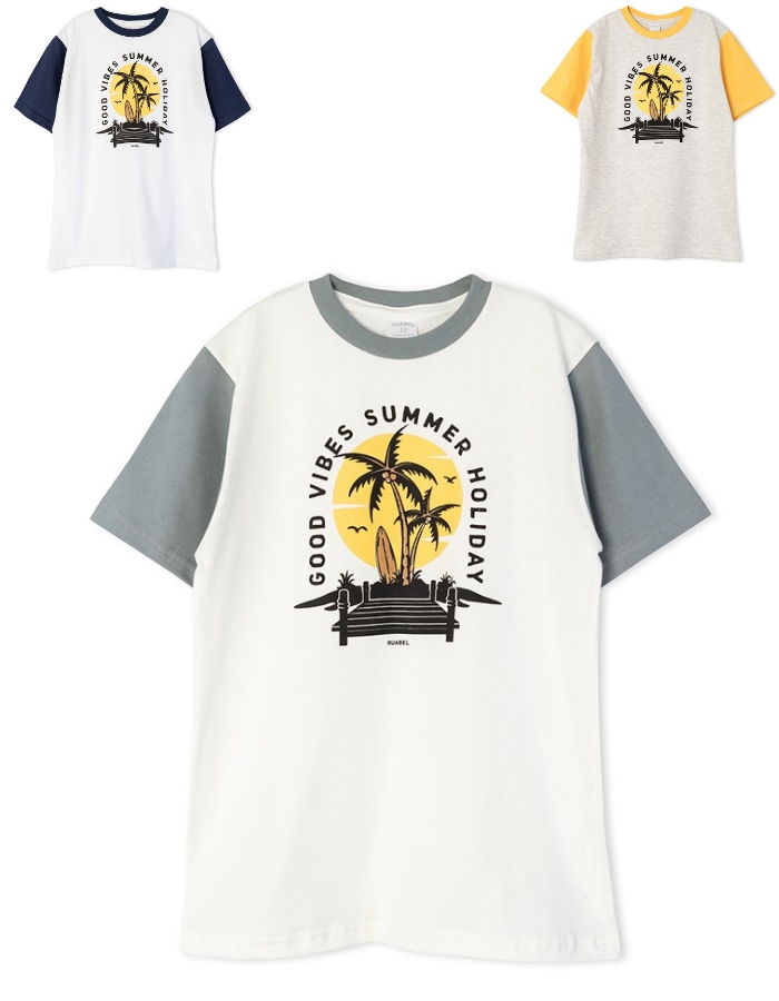 Remera manga corta para nene estampa palmeras y sol. Ruabel