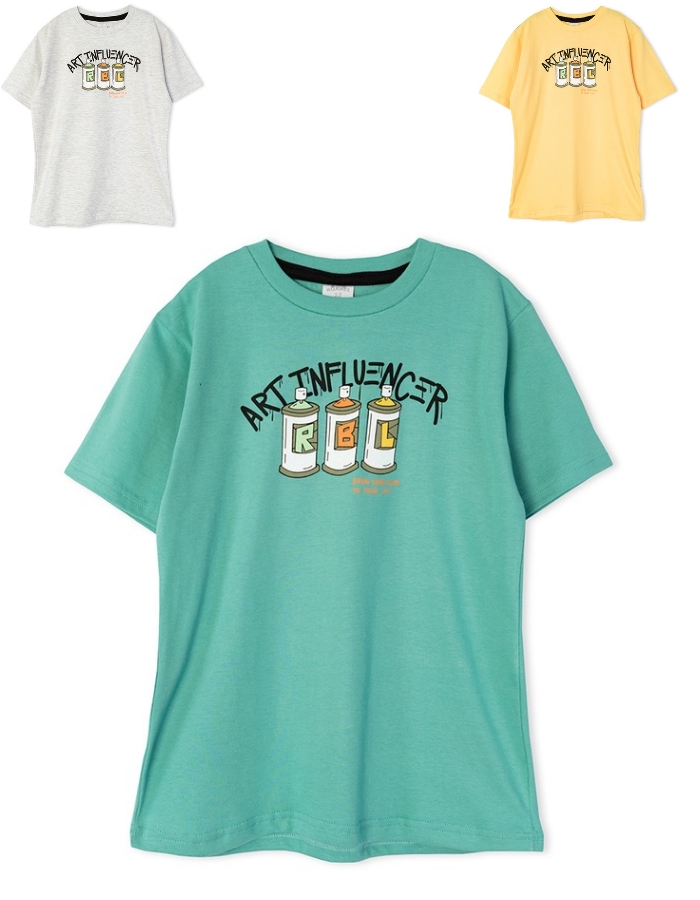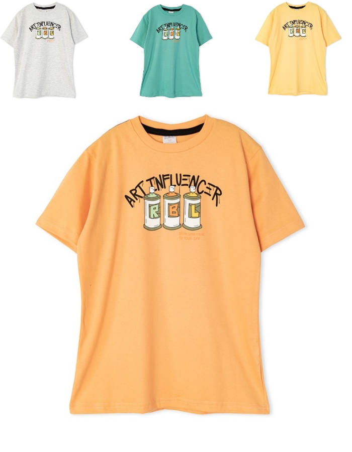 Remera msanga corta de nene con estampa 'Art Influencer'. Ruabel