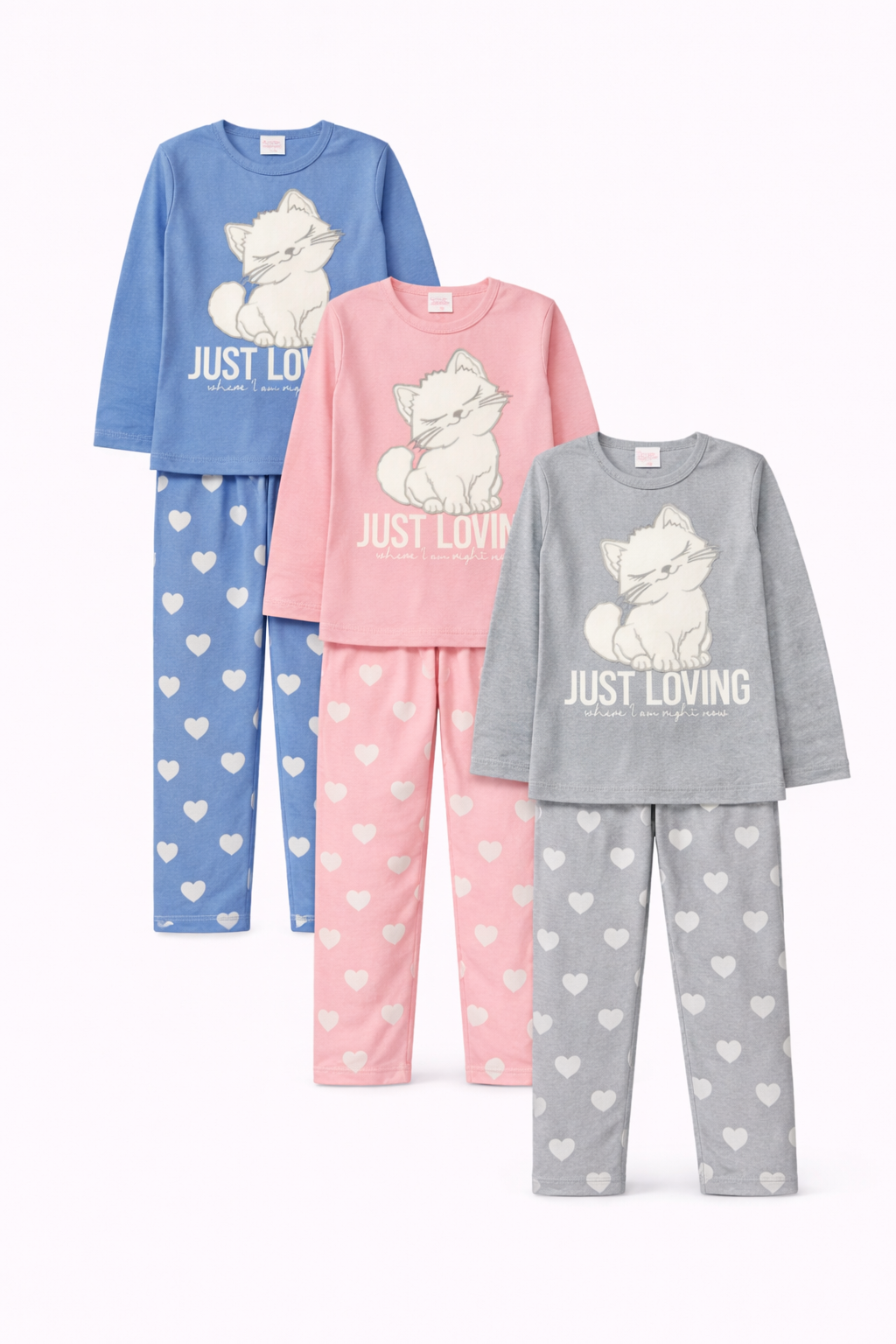 Pijama de jersey con aplique de peluche linea gatito