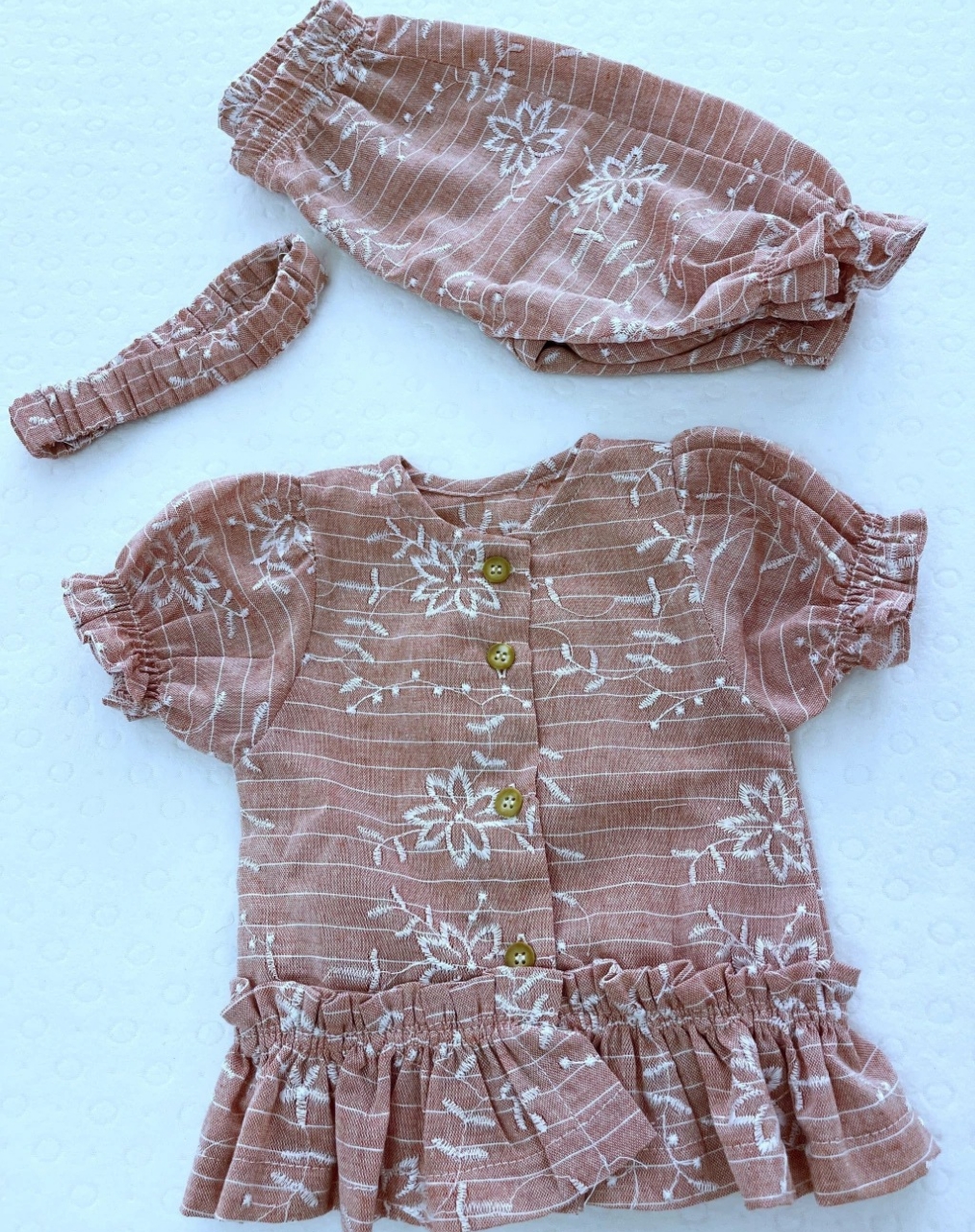 SET AJUAR 3 PIEZAS BATITA PANTALON CON GUANTE Y GORRITO PICOT PICCOLO