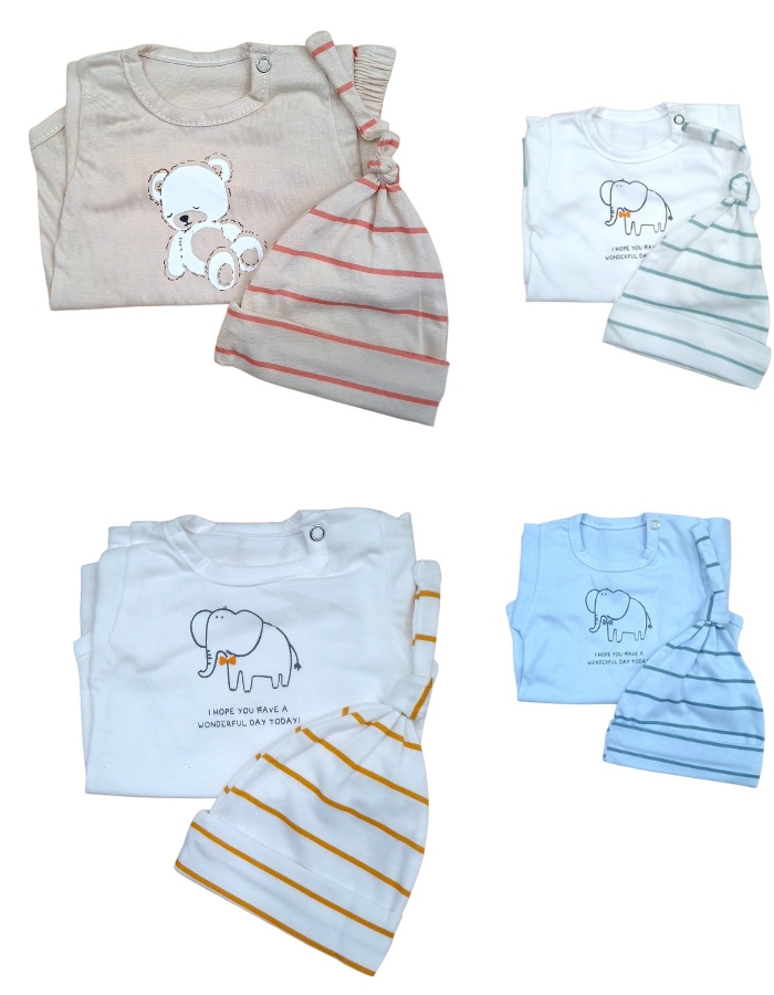 Set : Babita manga larga + Medio osito + Gorrito estampado. Gamise