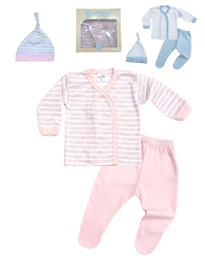 Set: Batita manga larga + Medio osito + gorrito rayado. Gamise