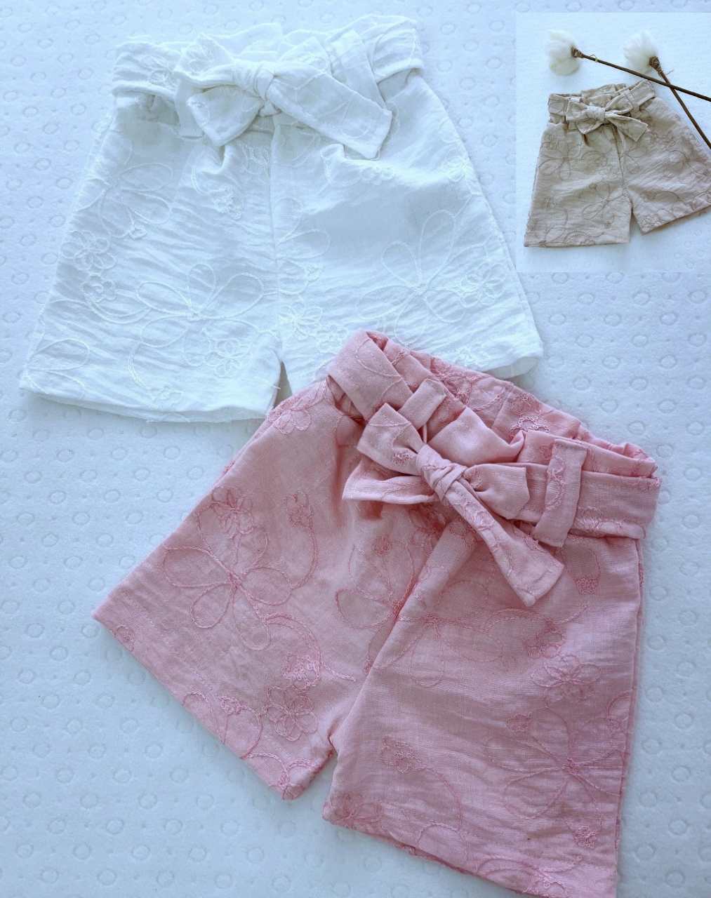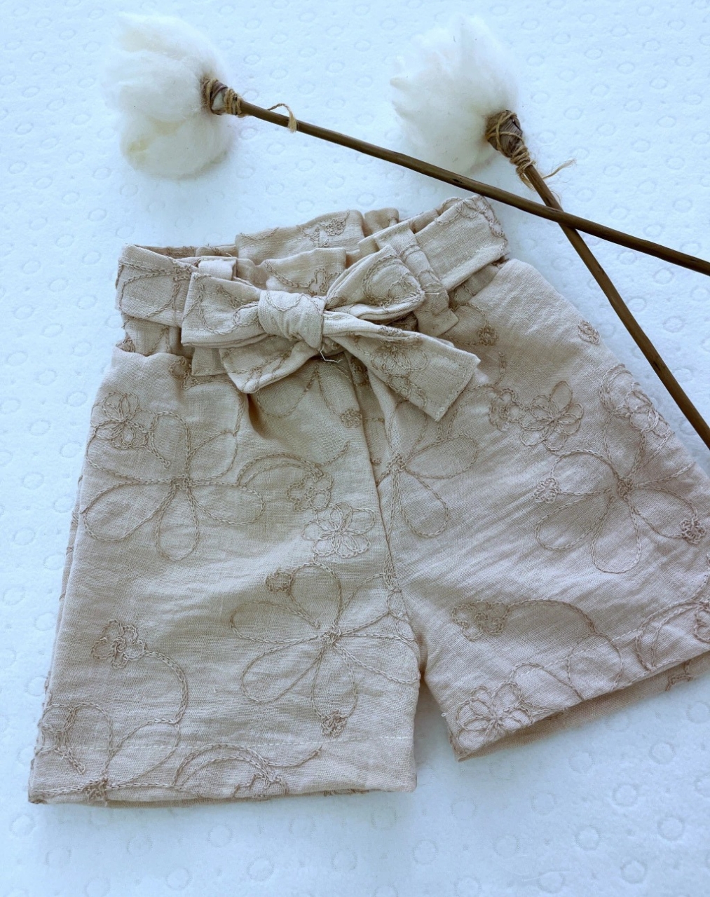 SHORT DE LINO BORDADO CON LAZO. COCOMIEL