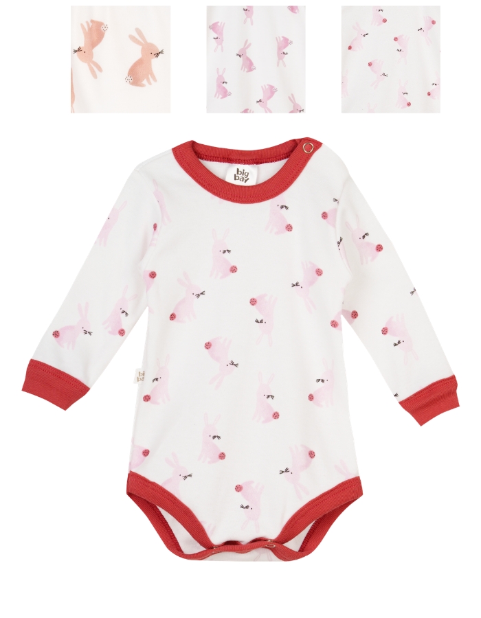 BODY MAMELUCO MANGA LARGA ESTAMPADO CONEJOS. BIG BAY