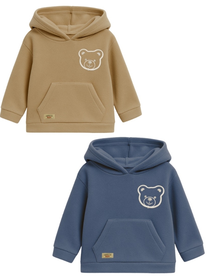 Buzo bebe varón polar microfibra c/bolsillo plaqué y aplique oso.Gepetto