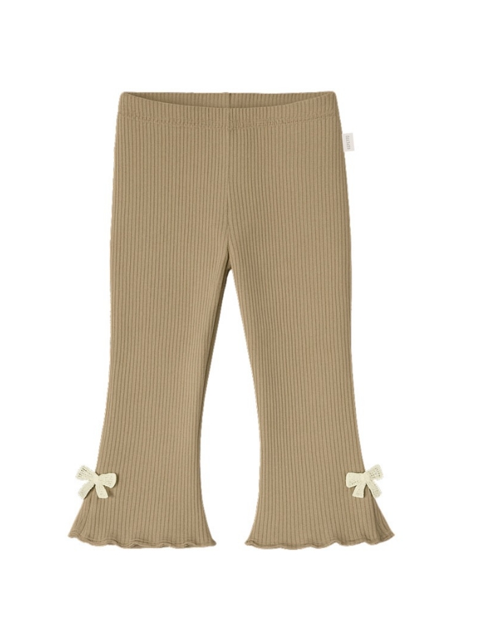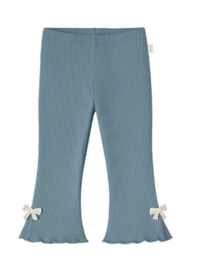 Pantalon beba nena morley con tajos laterales y moñitos de puntilla.Gepetto