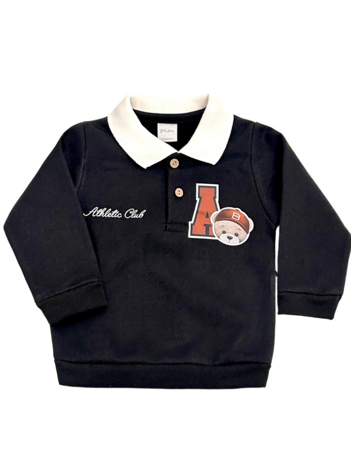 Buzo cuello polo de frisa con estampa.Pilim