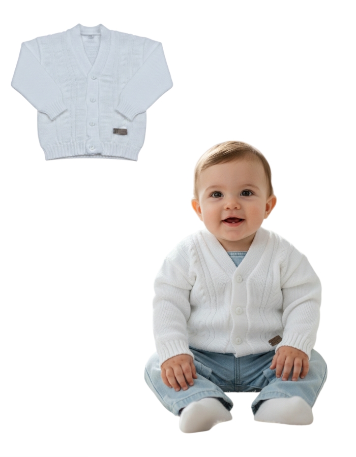 Cardigan de dralon c/torzadas blancos. Bautismo. CEO.