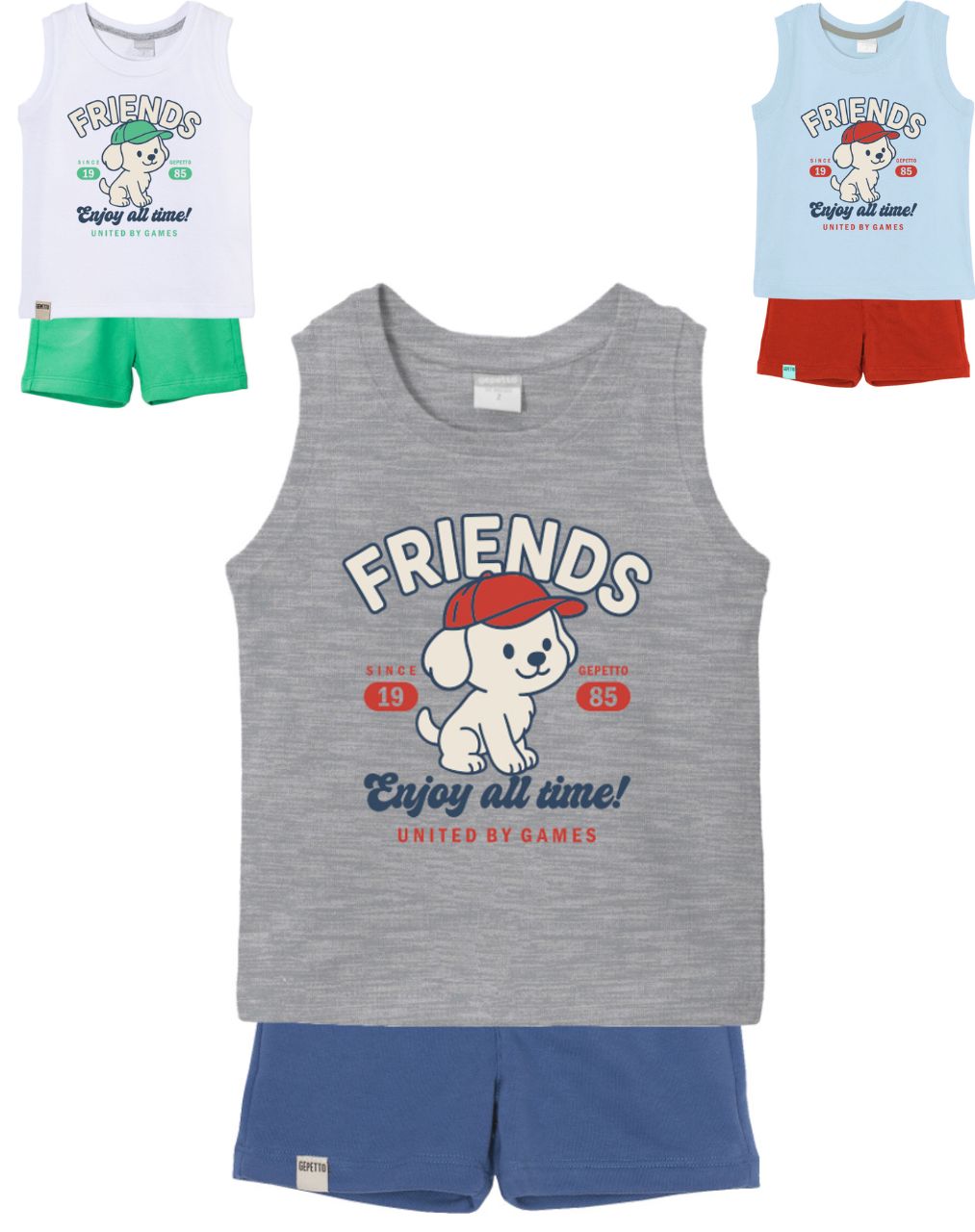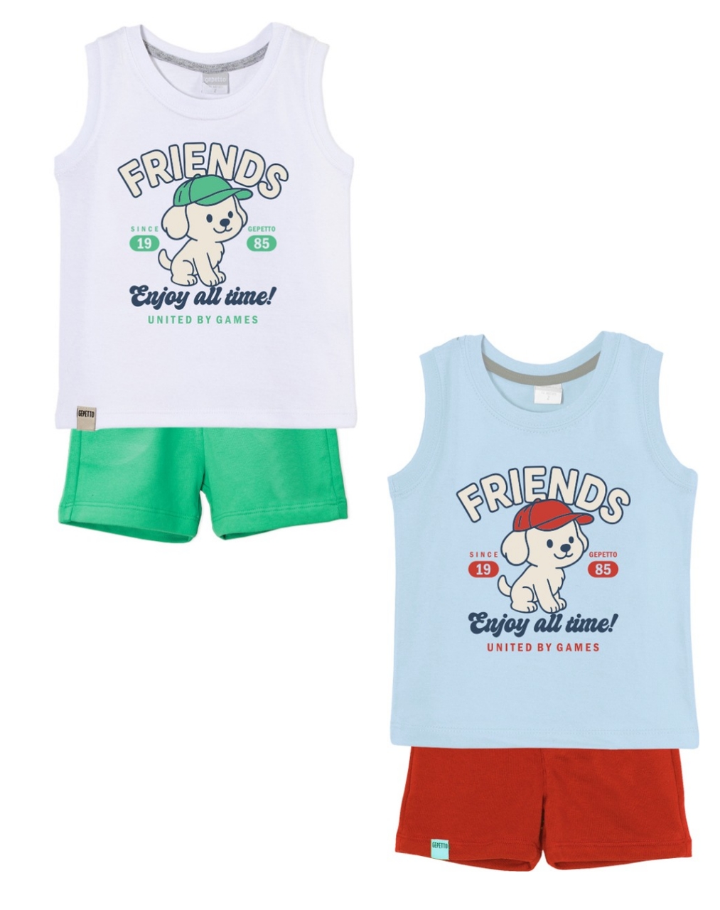 Conjunto bebe remera sin mangas con recorte de hombros y pantalon de jersey combinado estampa varon.Dreams