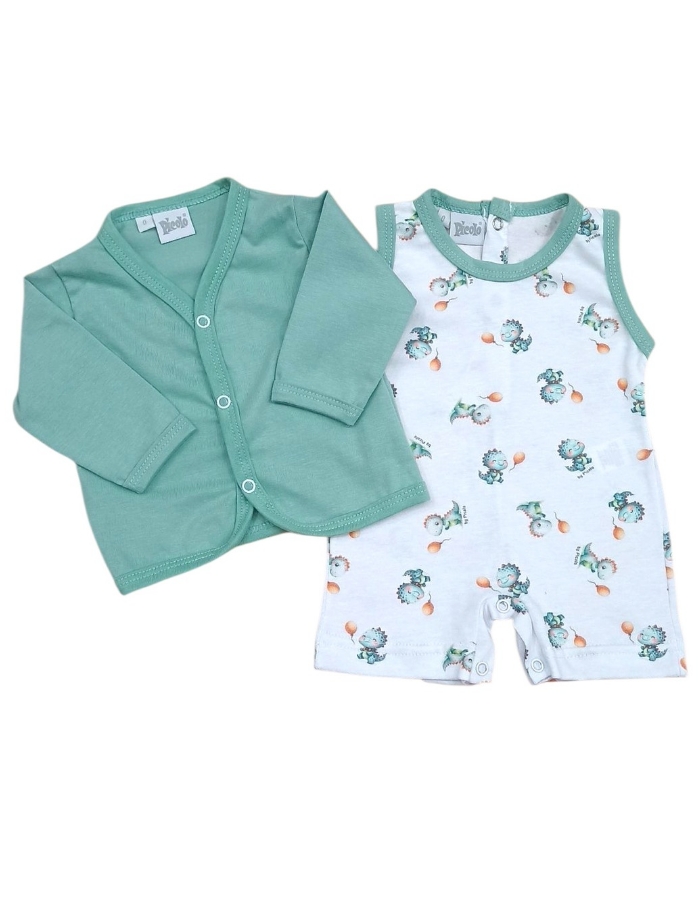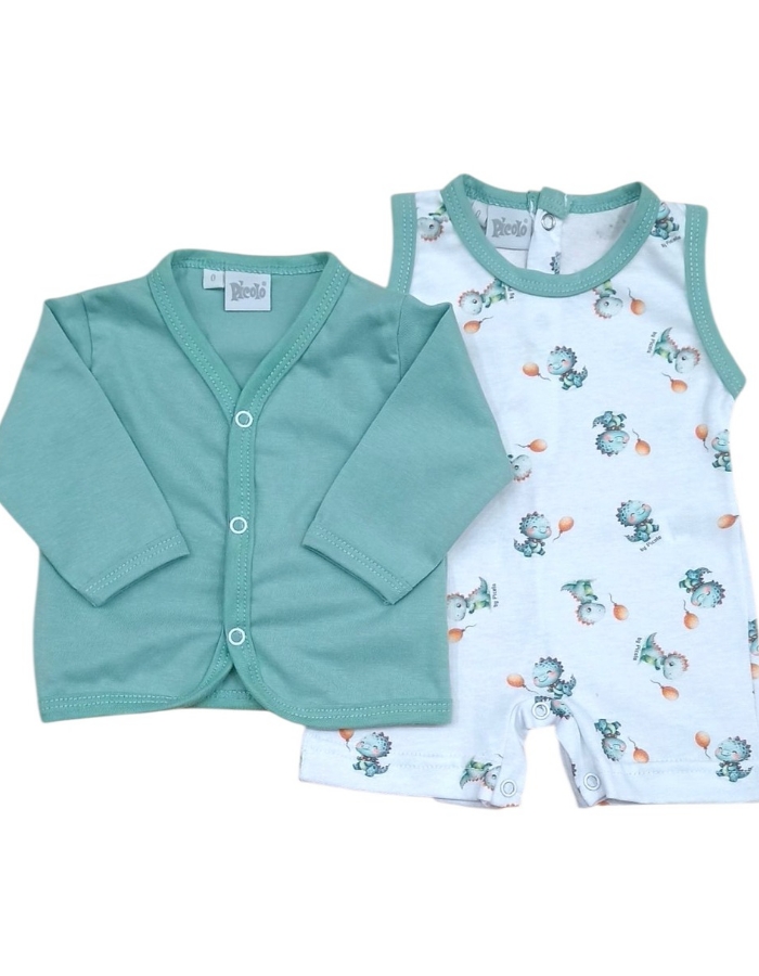 Conjunto de enterito sin mangas y saquito estampa dinos.Piccolo