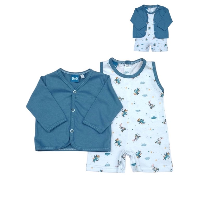 Conjunto de enterito sin mangas y saquito estampa aviones.Piccolo