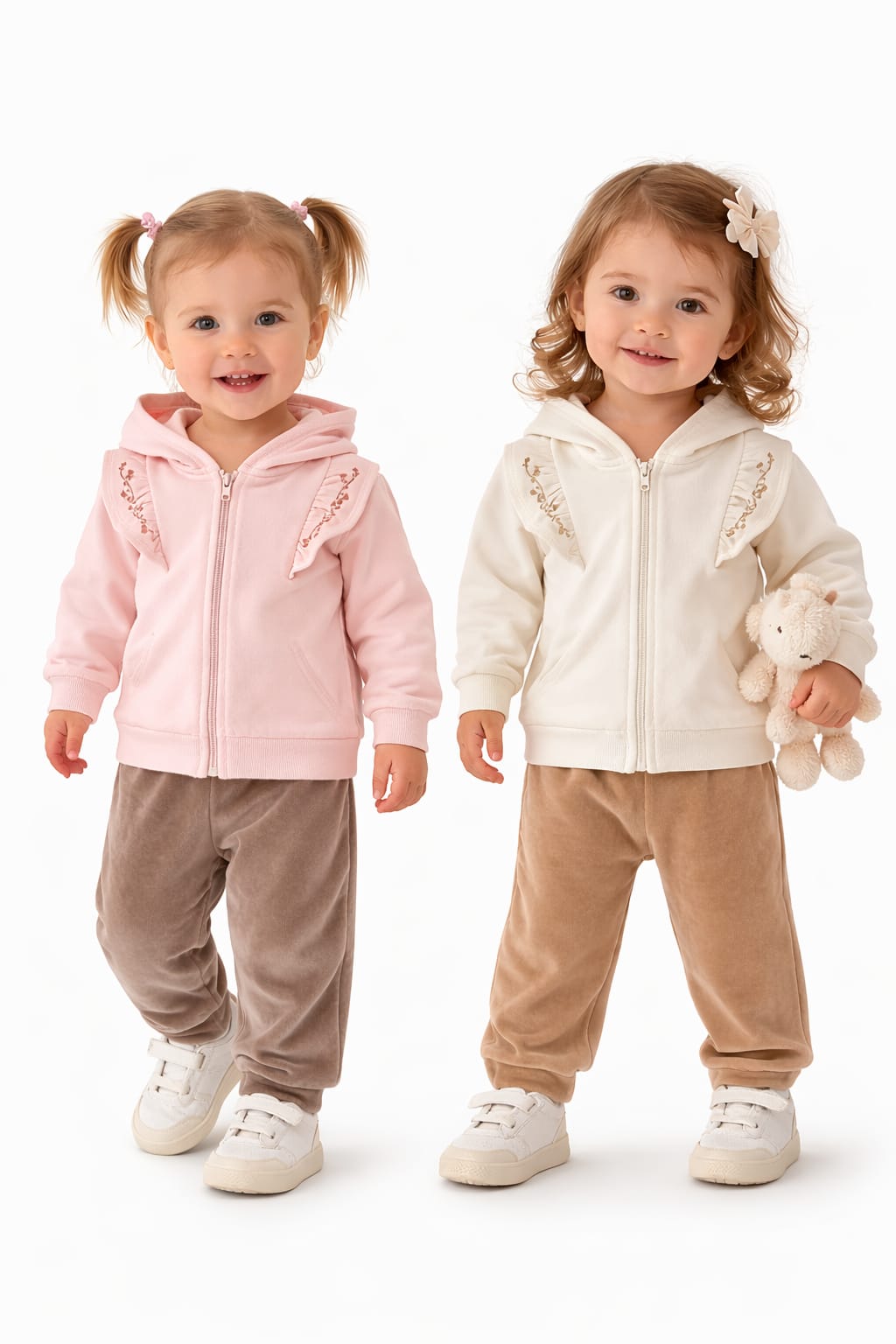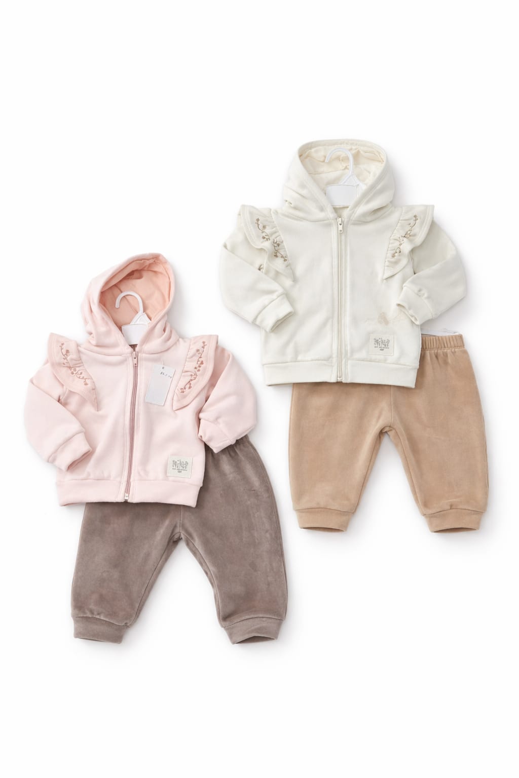 CONJUNTO PLUSH NENE SAQUITO CON CAPUCHA + PANTALON BABY SKIN