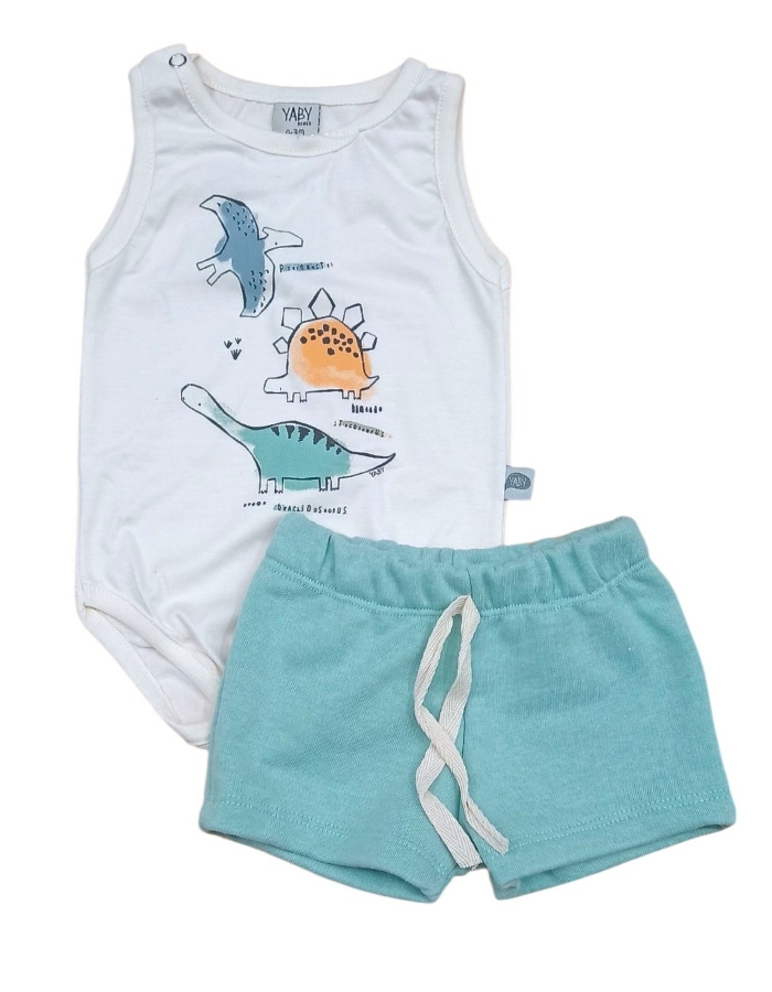 Conjunto: Remera manga corta estampada + short beba. Big bay