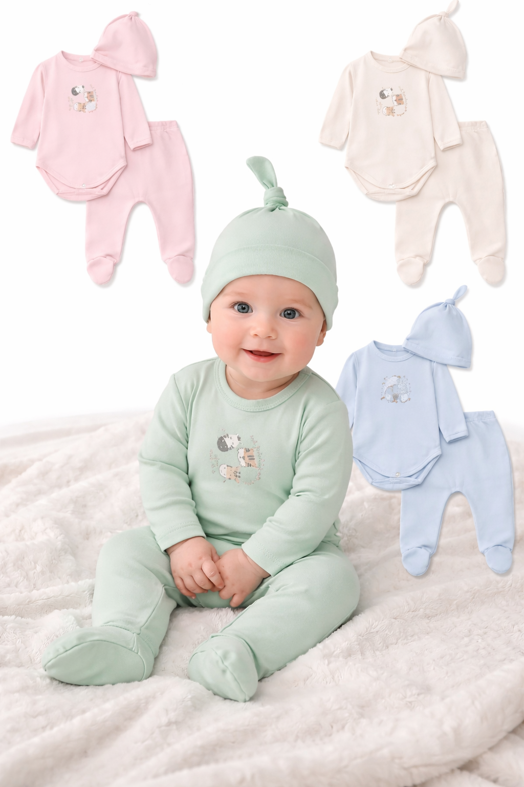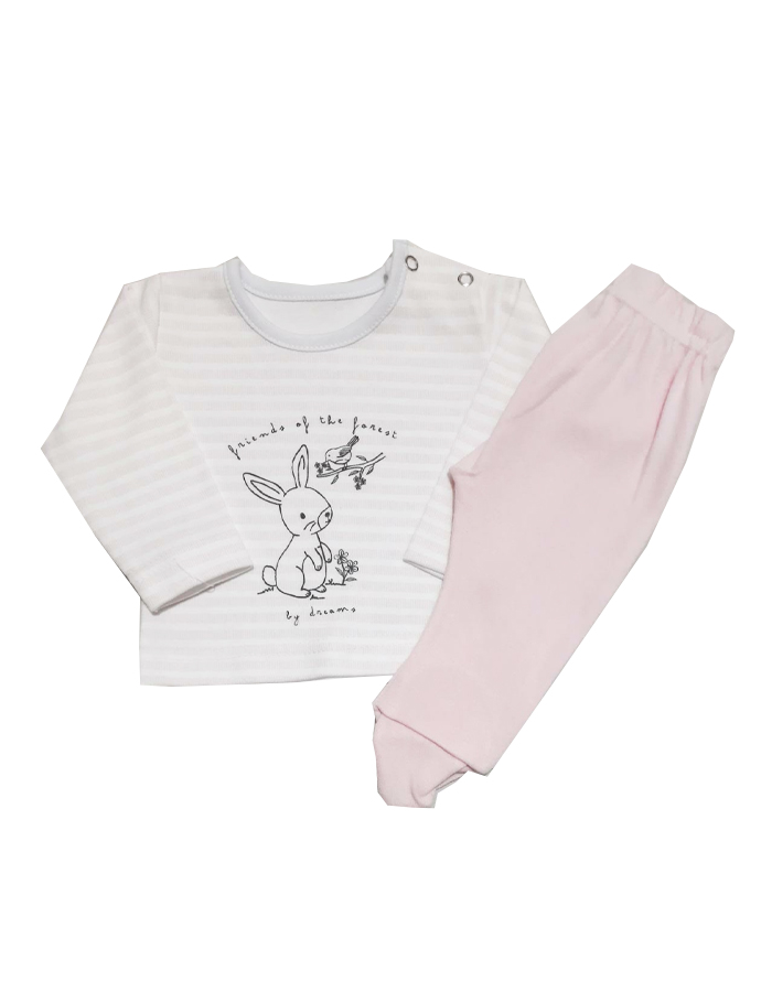 CONJUNTO BEBA SAQUITO ESTAMPADO CONEJOS + PANTALON LISO. BIG BAY