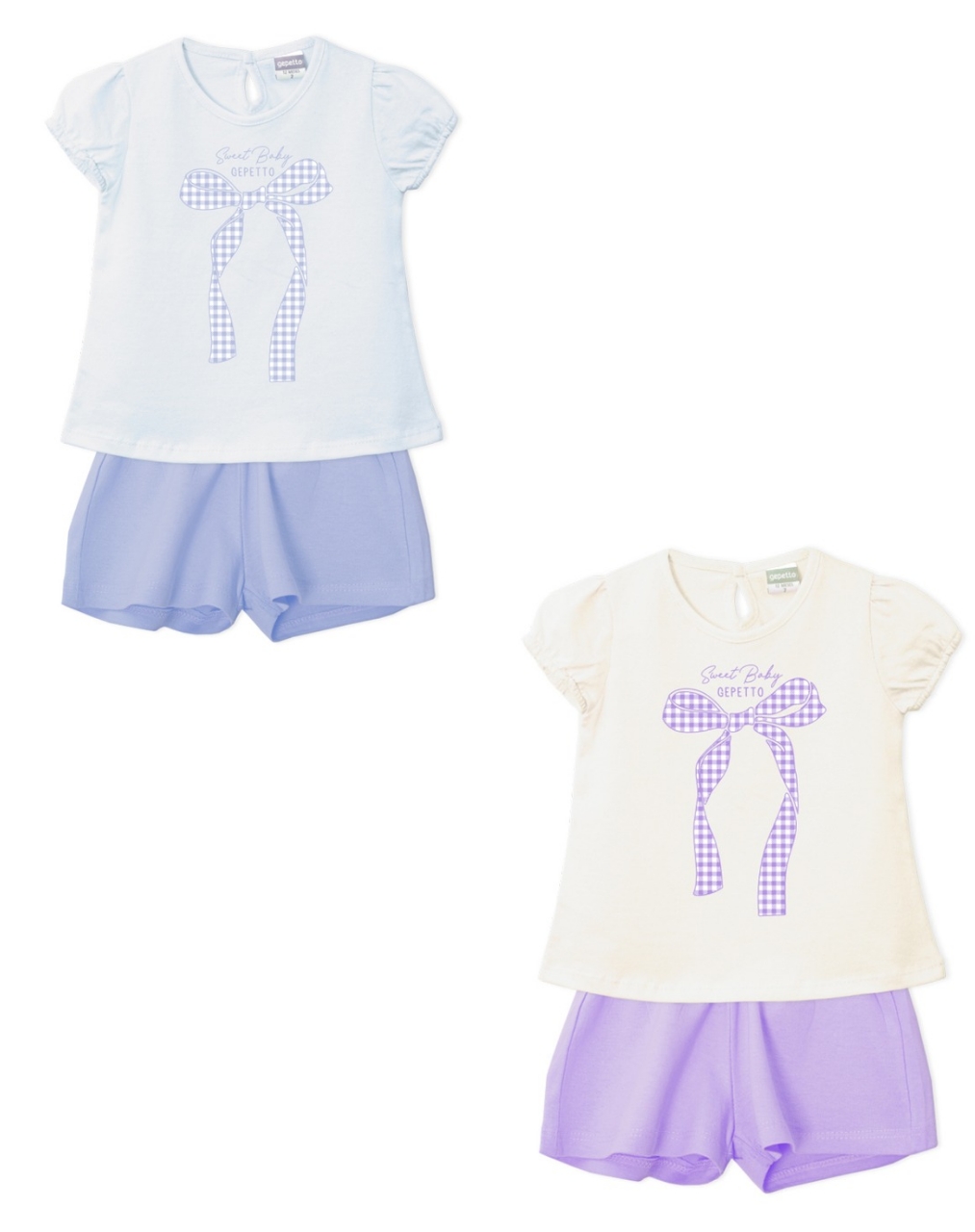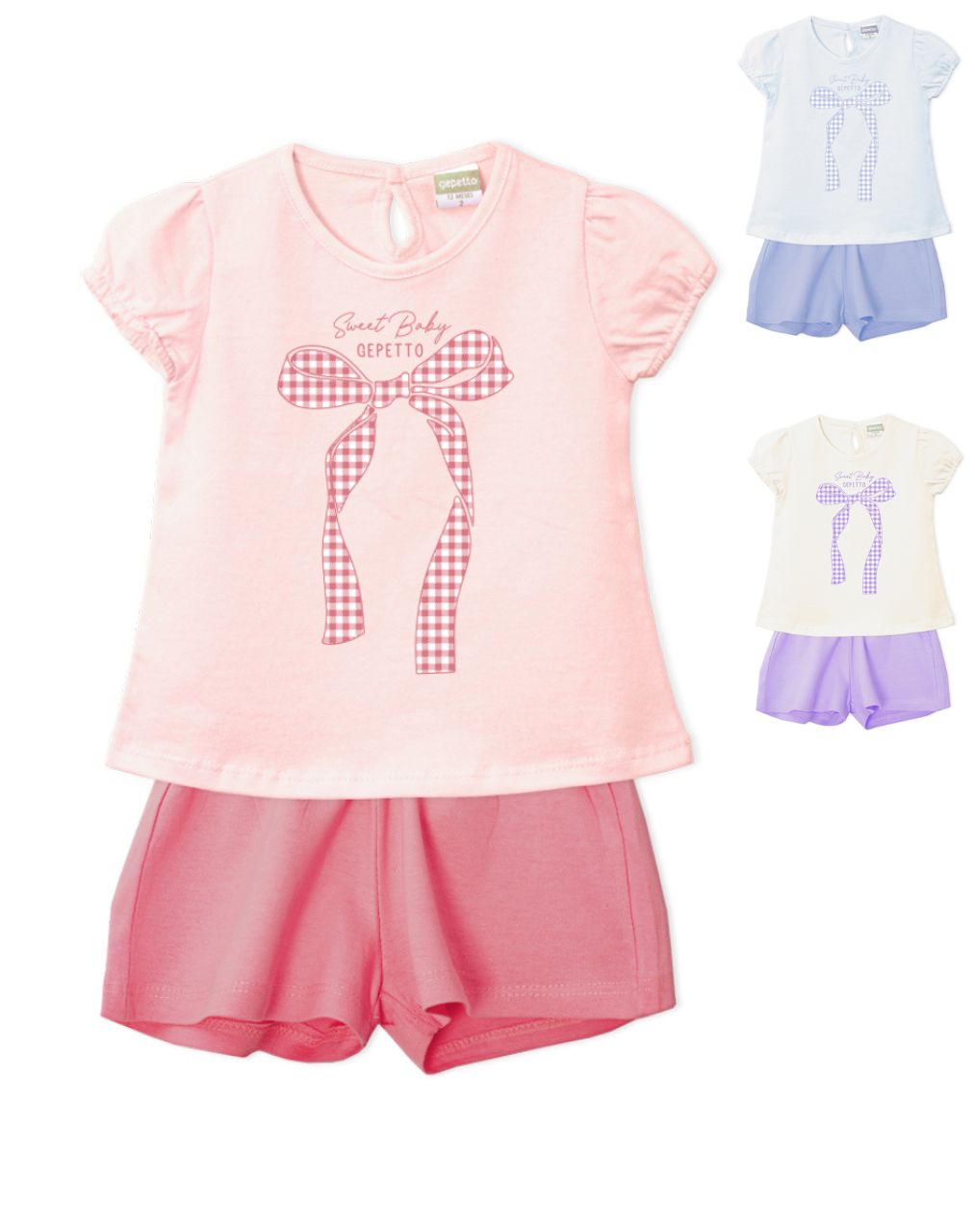 Conjunto de beba short con remera jersey moño vichy gepetto