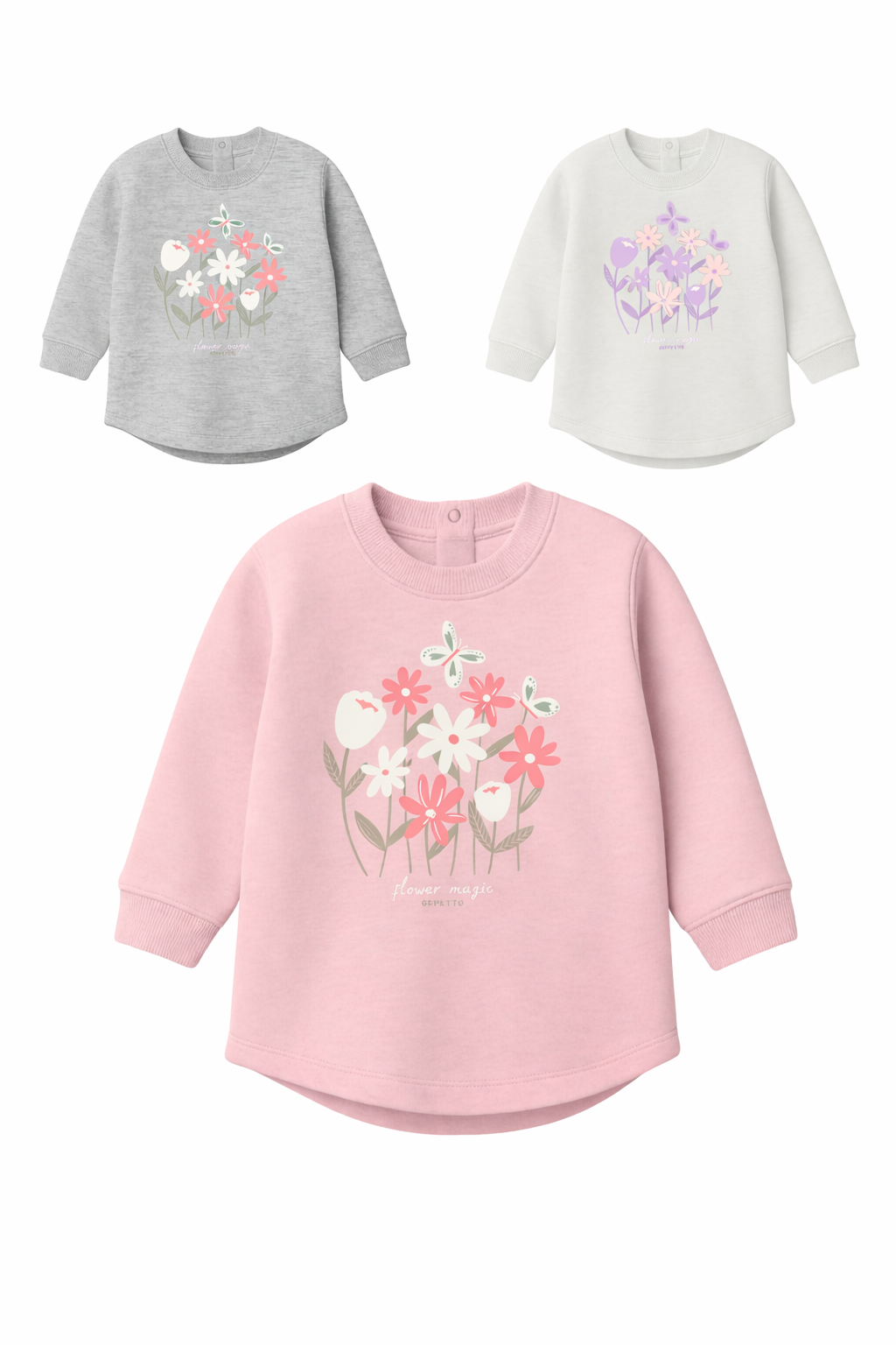 Buzo beba nena con estampa flores con brillo.Gepetto