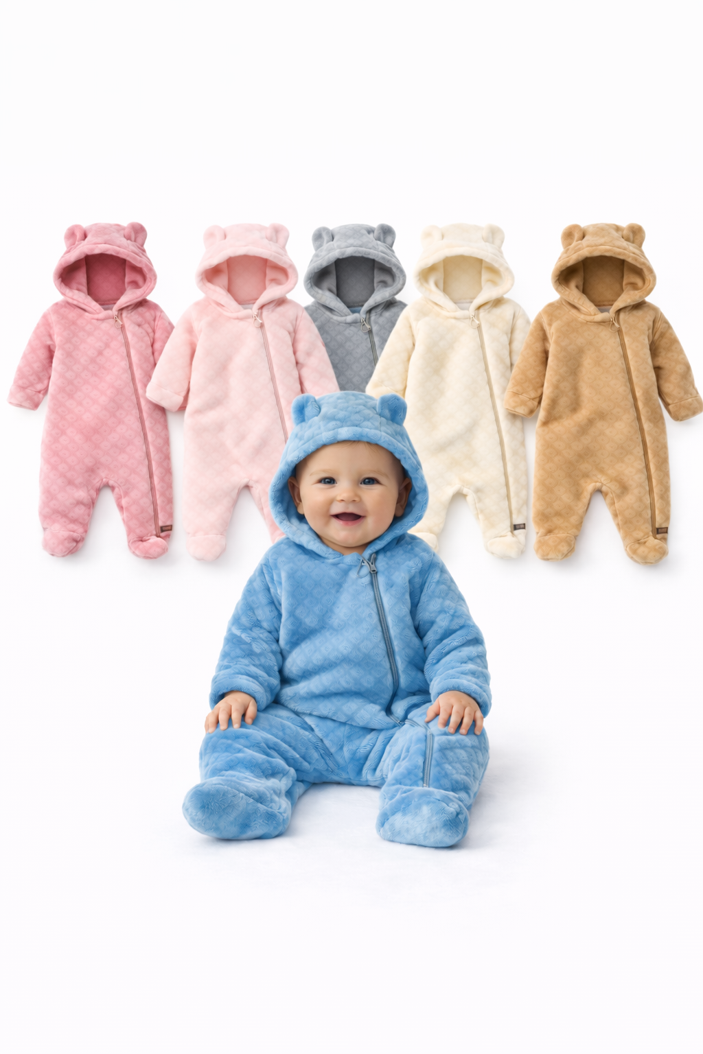 ENTERITO SIN PIE CON CIERRE CORAL FLEECE EMBOSSED EN PERCHA. BIG BAY