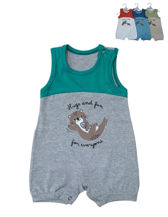 Enterito corto en algodon unisex estampa capibara.Baby cheito