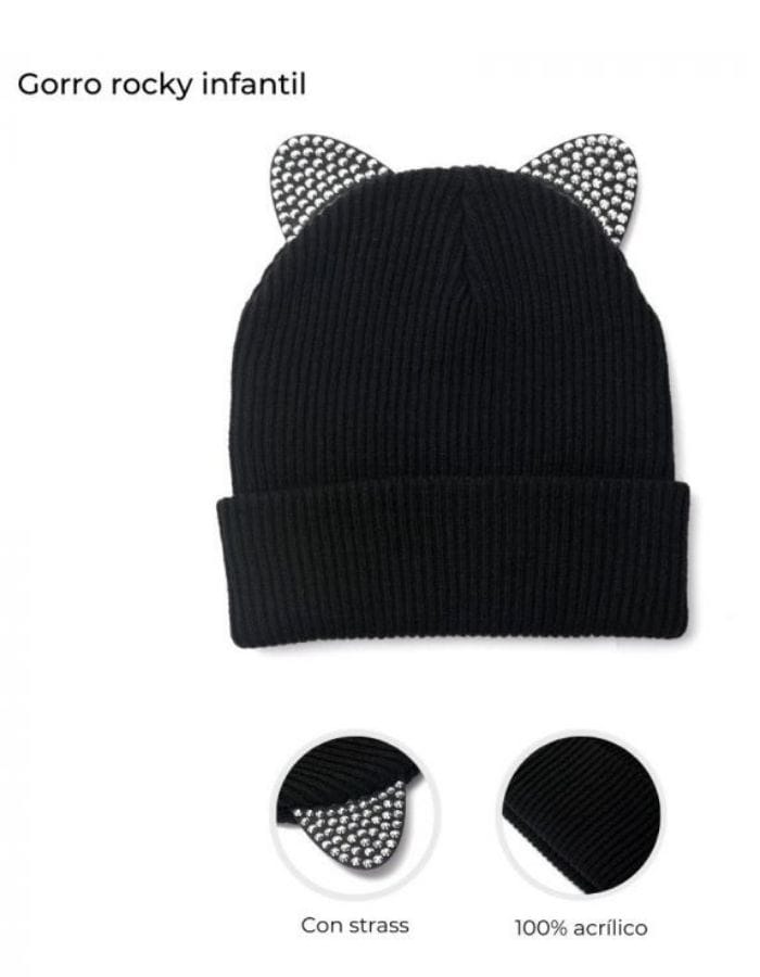 GORRO ROCKY INFANTIL TEJIDO. CON OREJITAS Y TACHAS