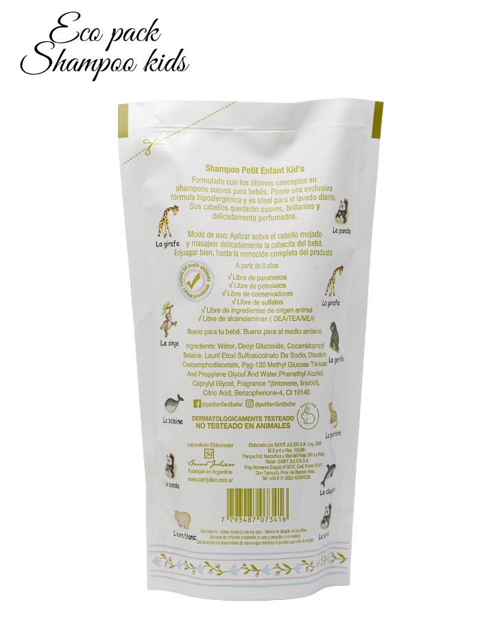 SHAMPOO KID´S ECO PACK X 400 ML. PETIT ENFANT