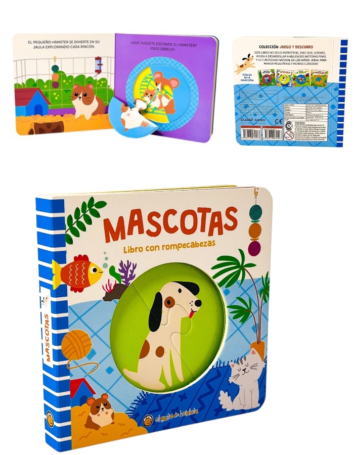 LIBRO CON TITERE, UNICORNIO MICO. GATO DE HOJALATA. MED. 20 X 20 CM.