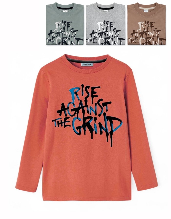 REMERA MANGA LARGA JERSEY PARA NENE ESTAMPA 'RISE AGAINST'. GRUNY