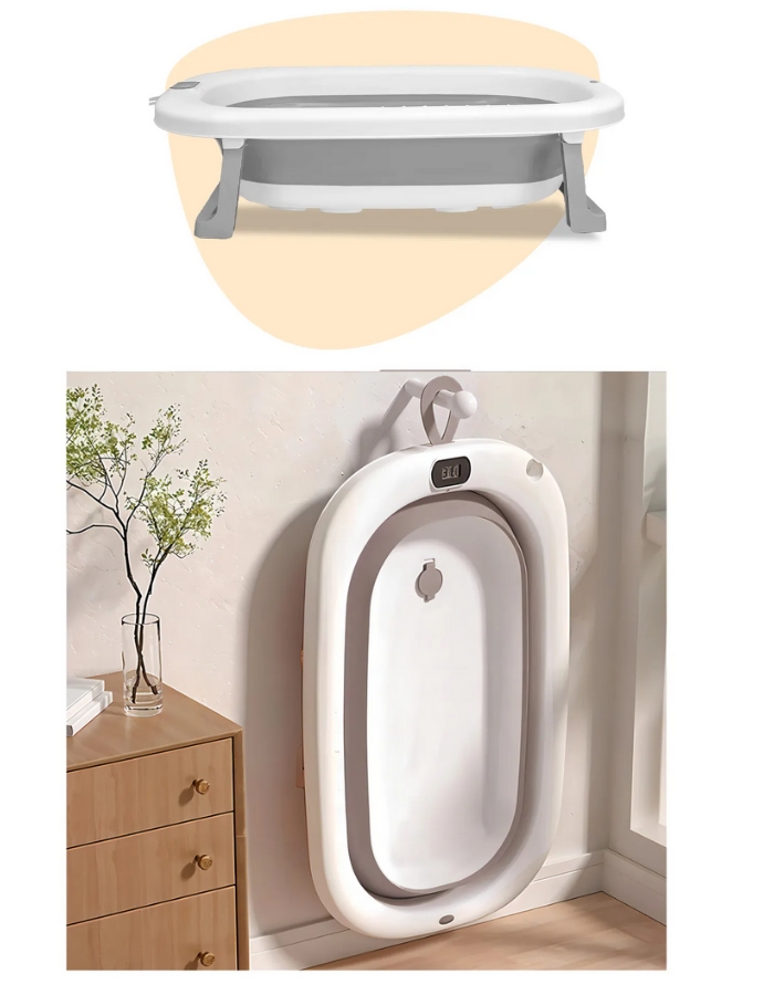 OKBB0359 BAÑERA PLEGABLE GRIS CON TERMOMETRO. OK BABY