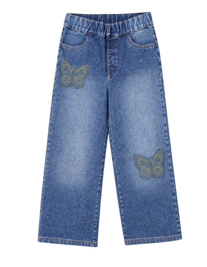 Jean junior nena wide leg y bordados mariposas.Gepetto