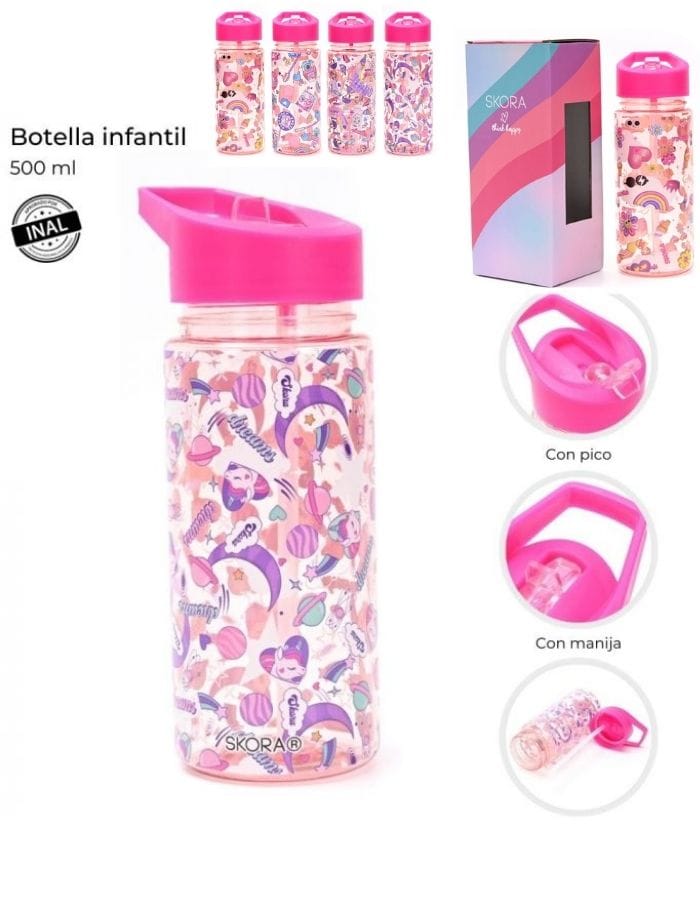 BOTELLA INFANTIL CON PICO 500ML ESTAMPA UNICORNIOS