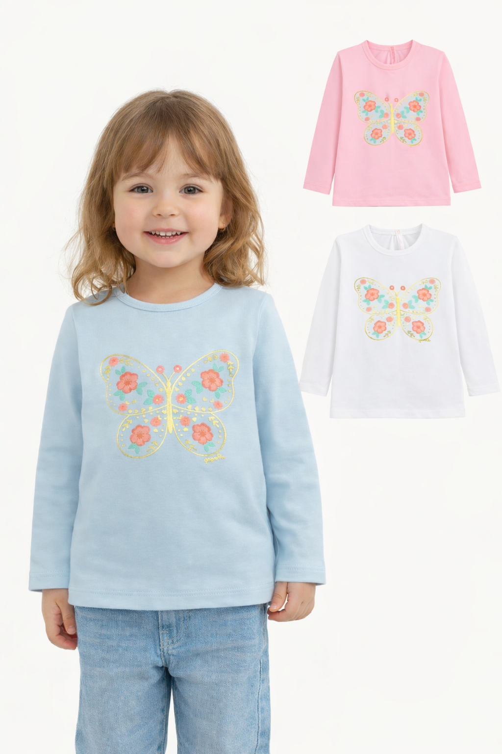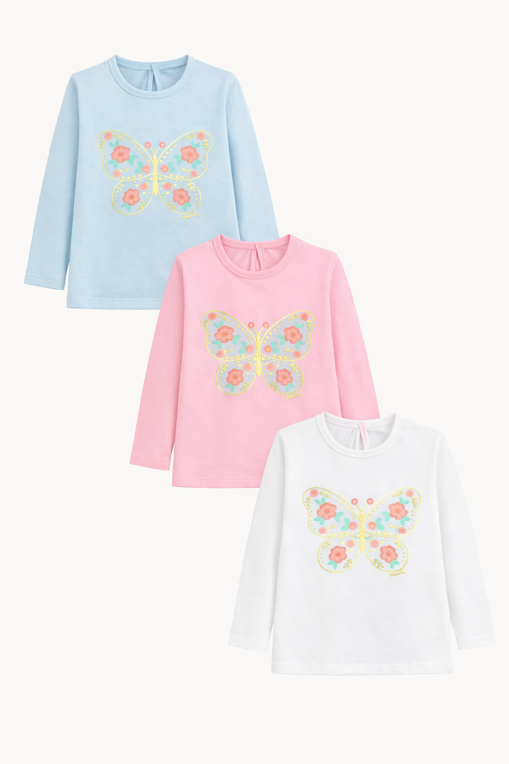 Remera bebe nena con estampa mariposa + foil.Gepetto