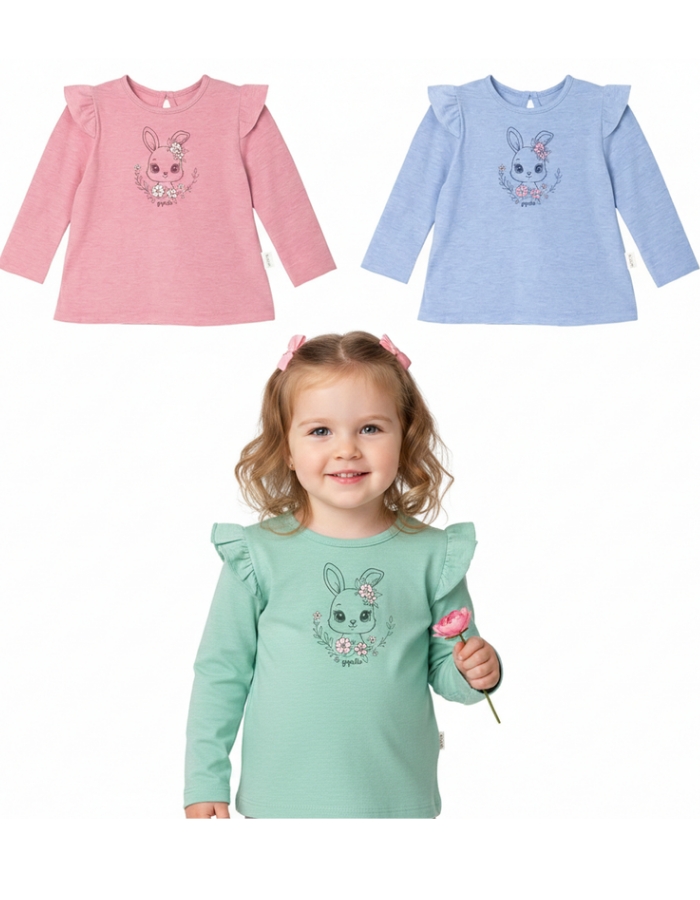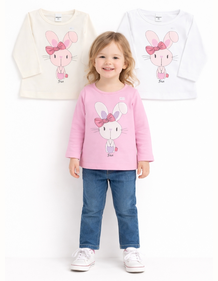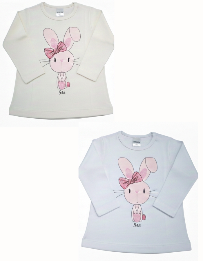 REMERA MAG LARGA PARA BEBA, ESTAMPA CONEJACON MOÑO. GRUNY