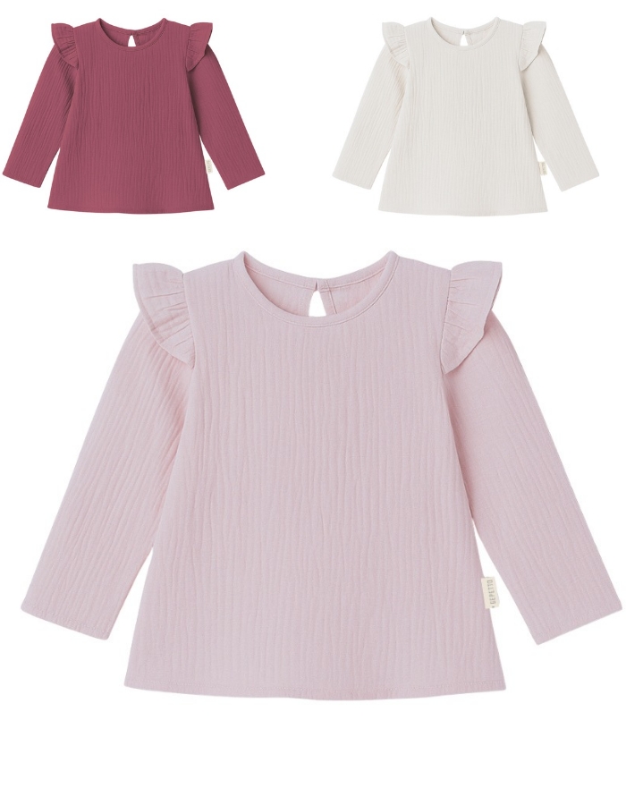 Remera beba con volado en hombros, bambula eslastizada. Pilim