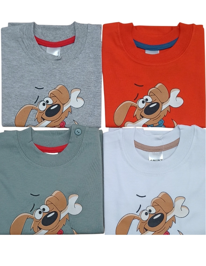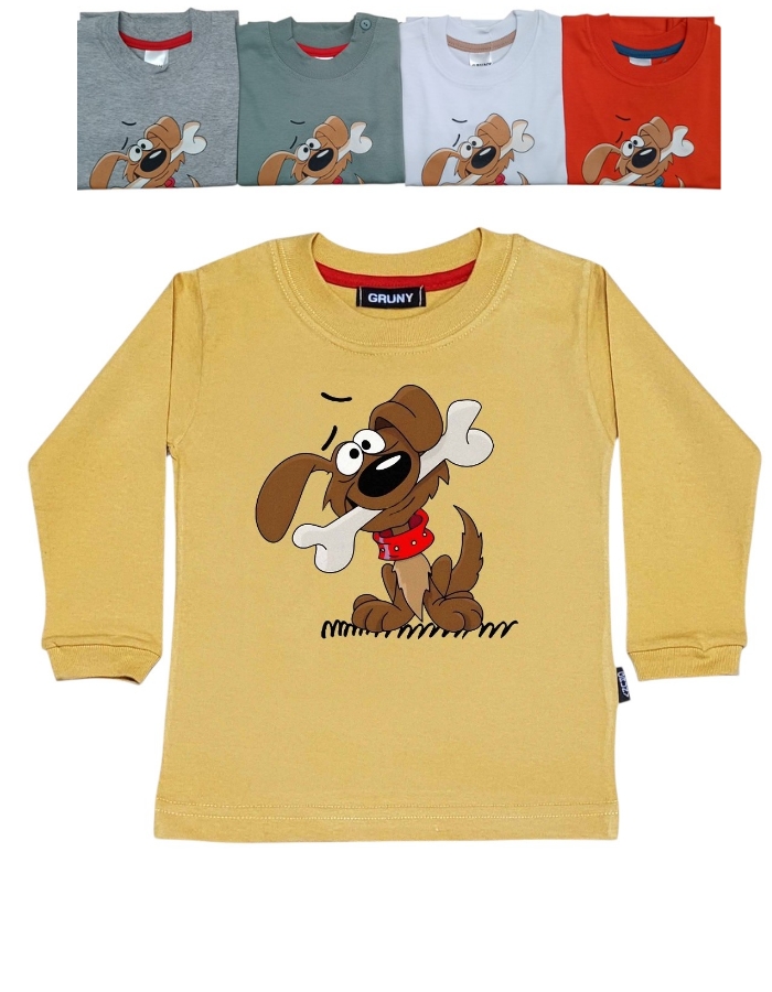 REMERA MANGA LARGA PARA BEBE ESTAMPA PERRITO CON HUESO. GRUNY