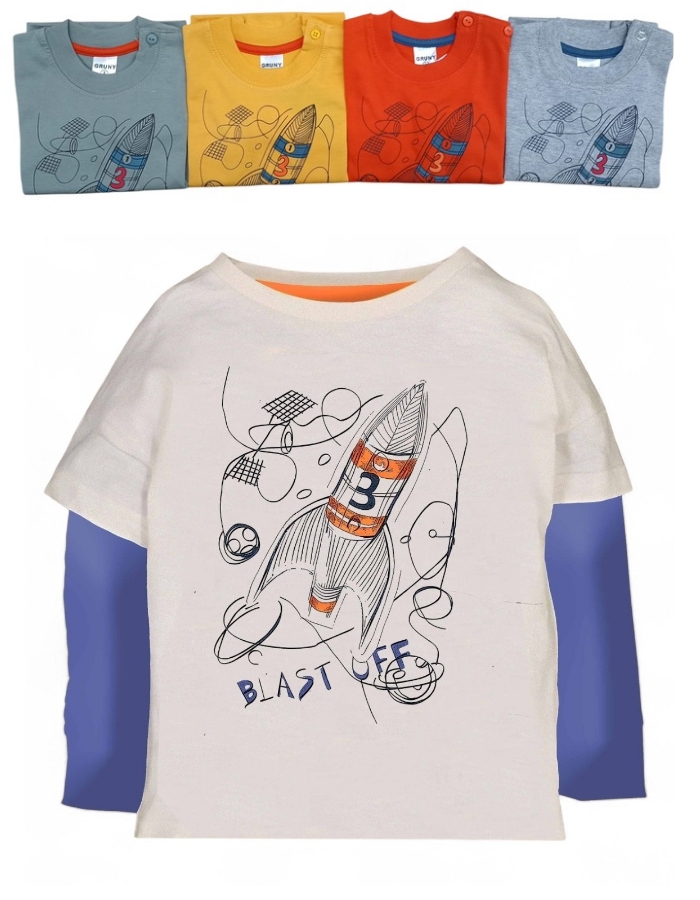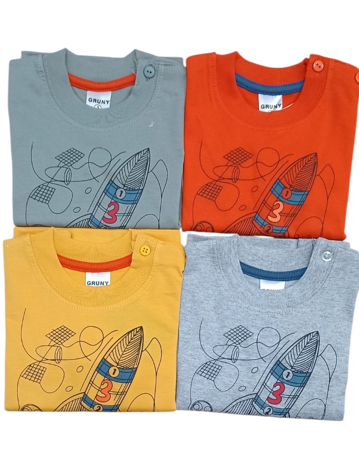 REMERA MANGA LARGA PARA BEBE DE JERSEY ESTAMPA COHETE. GRUNY