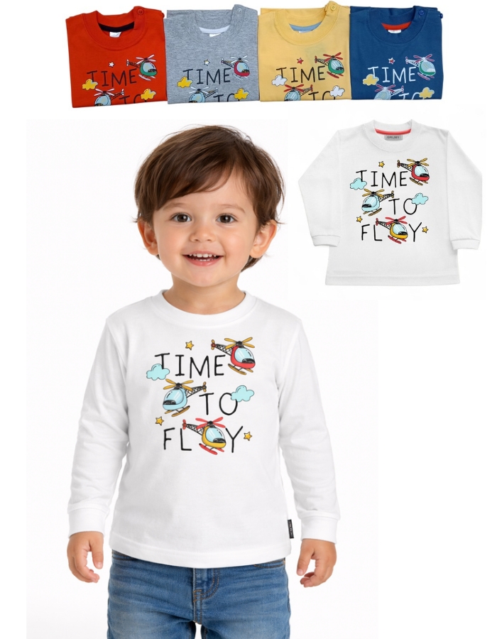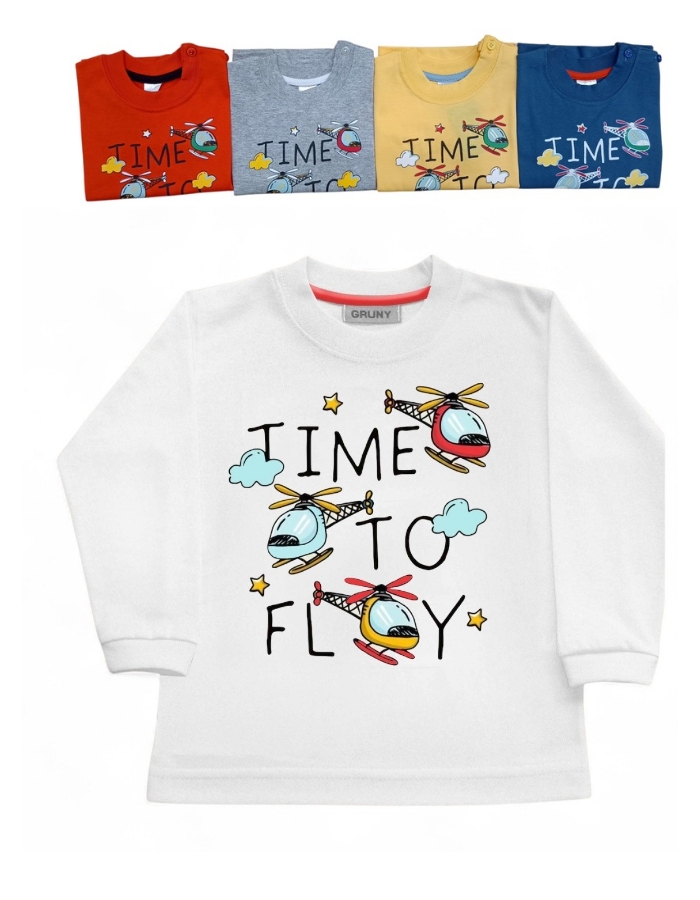REMERA MANGA LARGA PARA BEBE ESTAMPA ELICOPTEROS. GRUNY