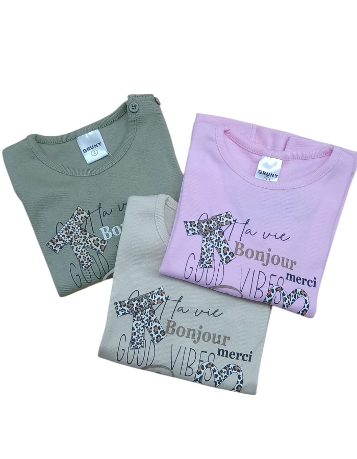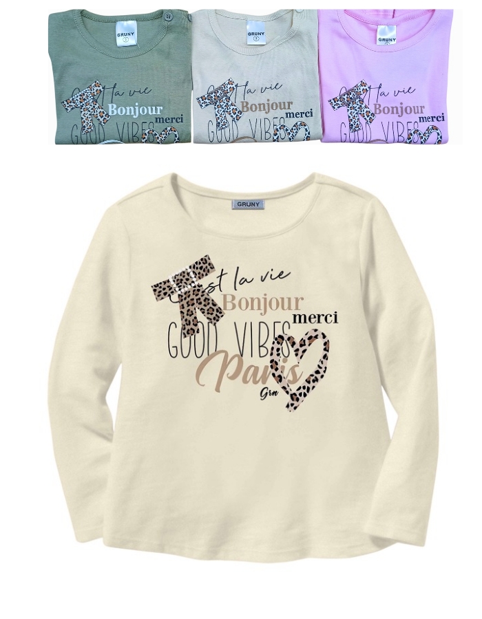 REMERA PARA BEBA MANGA LARGA ESTAMPA 'BOUNJOUR PARIS'. GRUNY