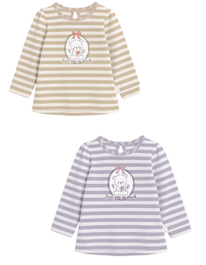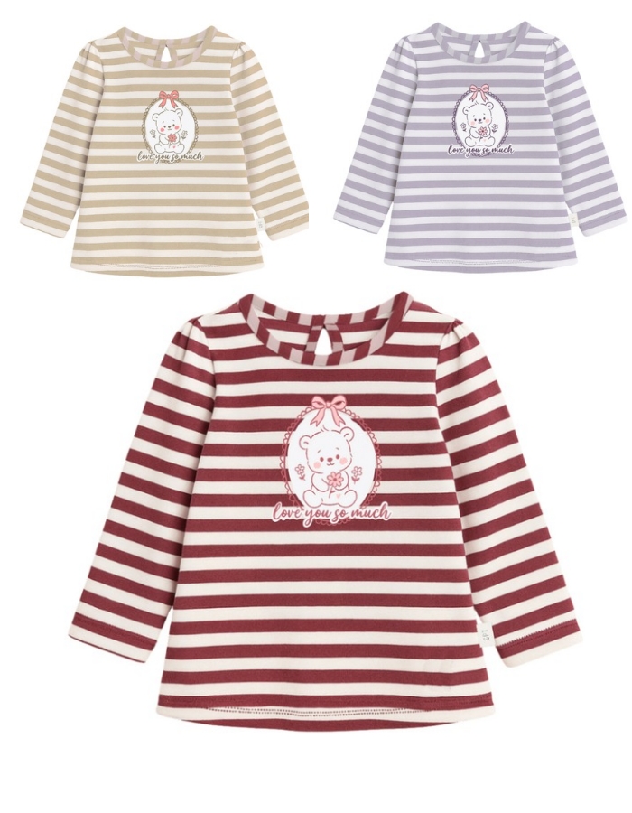 Remera beba nena rayada con estampa camafeo osito.Gepetto