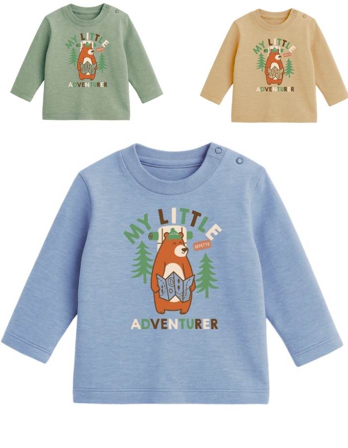 Remera bebe varón jaspeada c/estampa my little adventurer.Gepetto